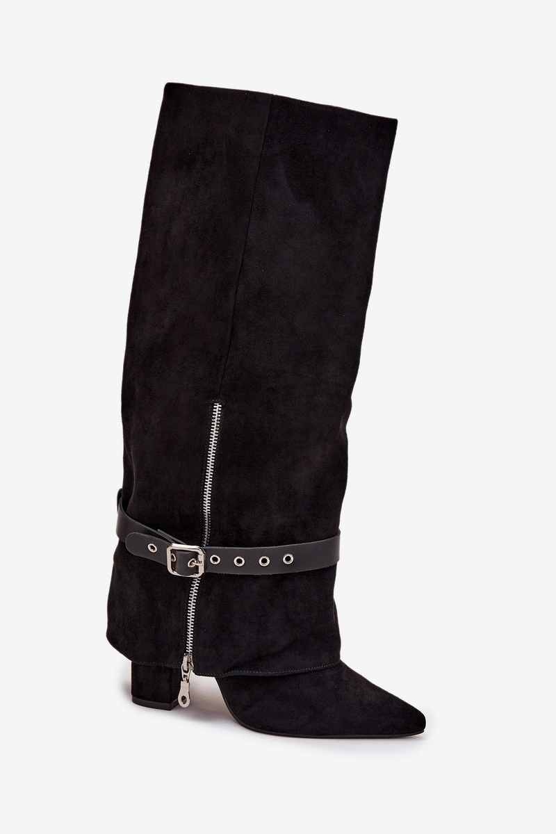 Kozaki Damskie Wsuwane Na Słupku Z Ozdobnym Paskiem Czarne Jolivine