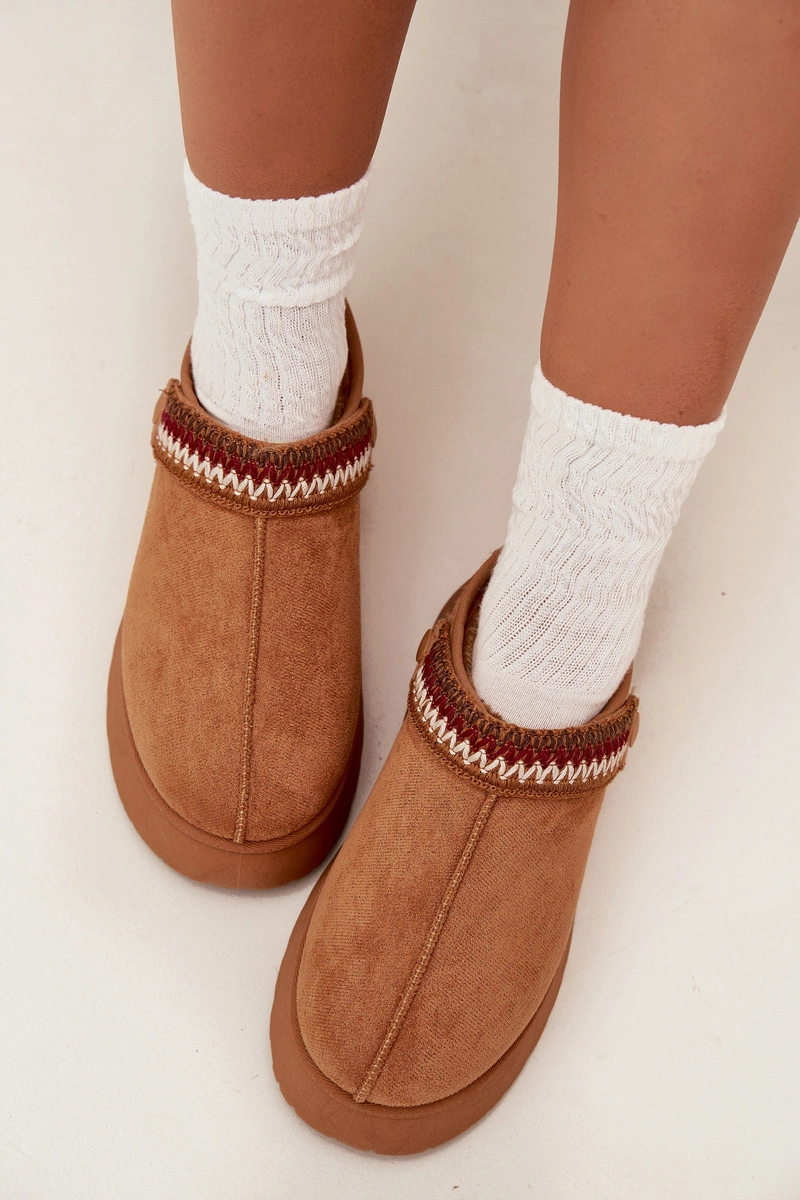 Śniegowce Damskie Niskie Z Ruchomym Paskiem I Haftem Na Platformie Camel Lyrisse