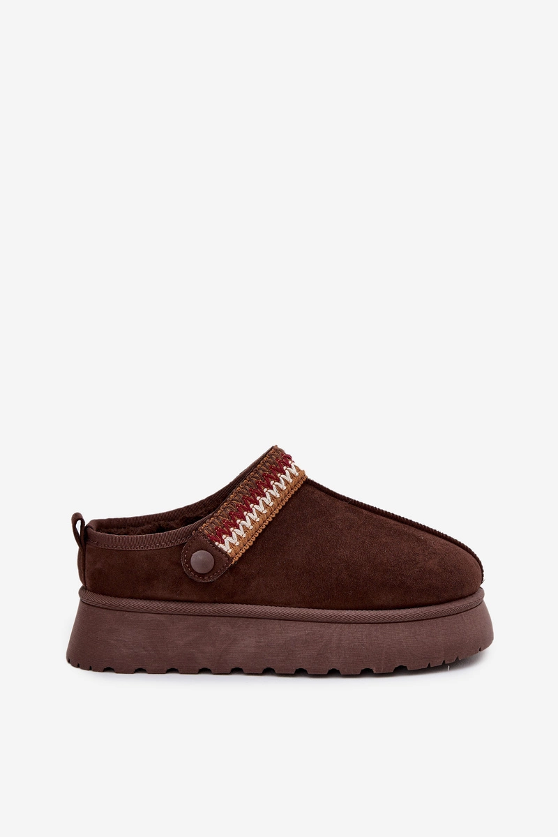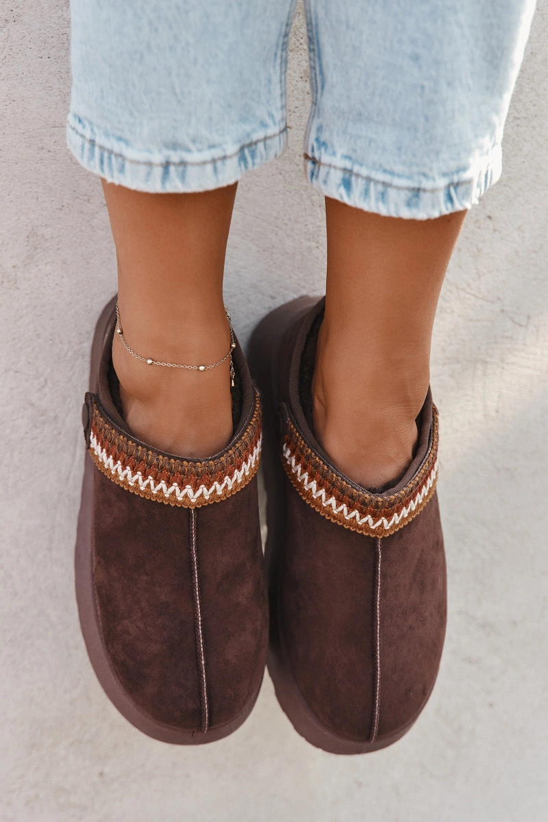 Śniegowce Damskie Niskie Z Ruchomym Paskiem I Haftem Na Platformie Czekoladowe Lyrisse