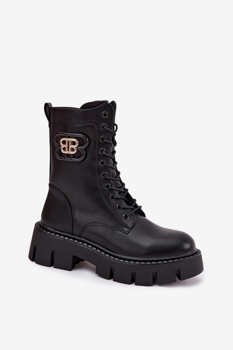 Ocieplane Botki Wokrery Damskie Z Ozdobą Czarne Melisse