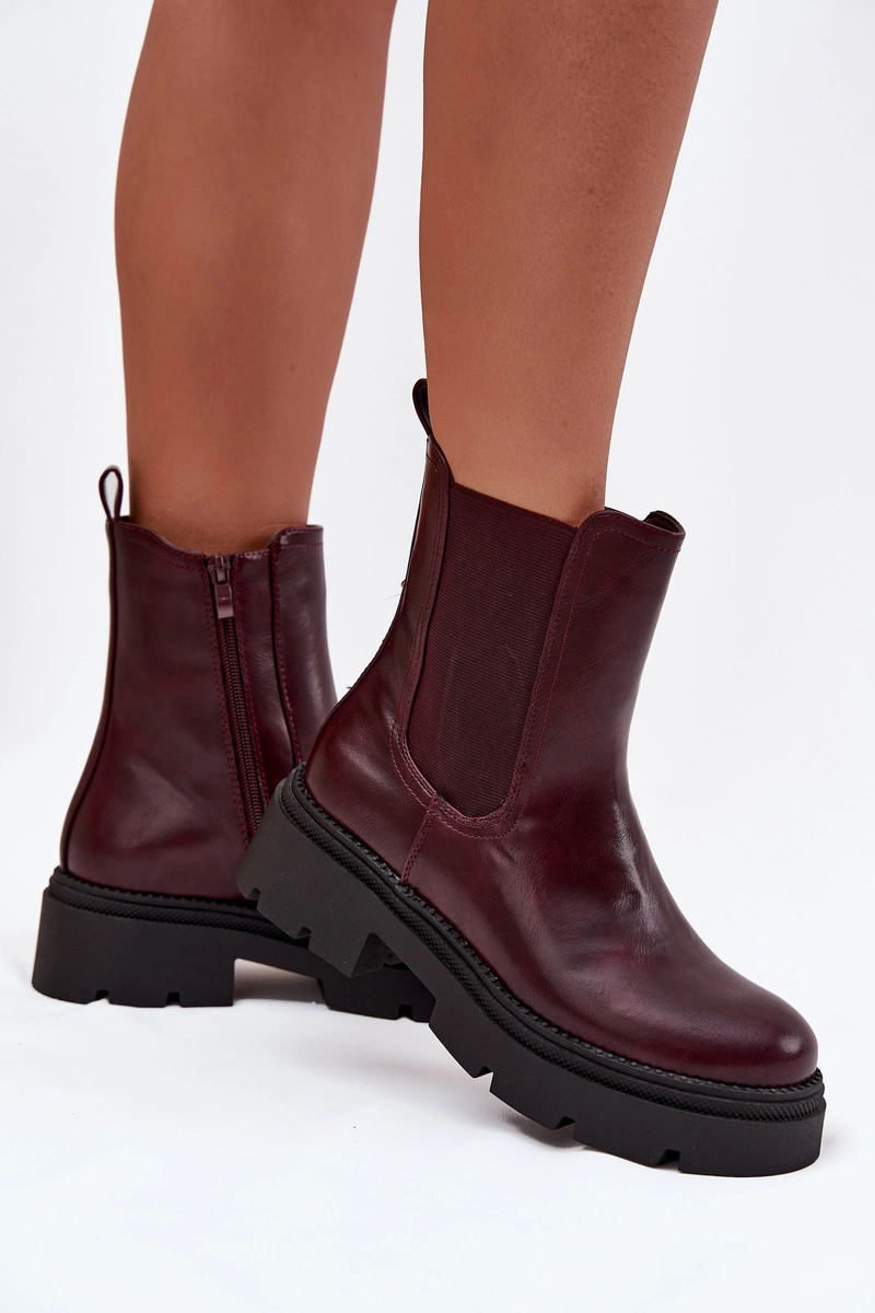 Ocieplane Botki Sztyblety Na Zamek Bordowe Niviane