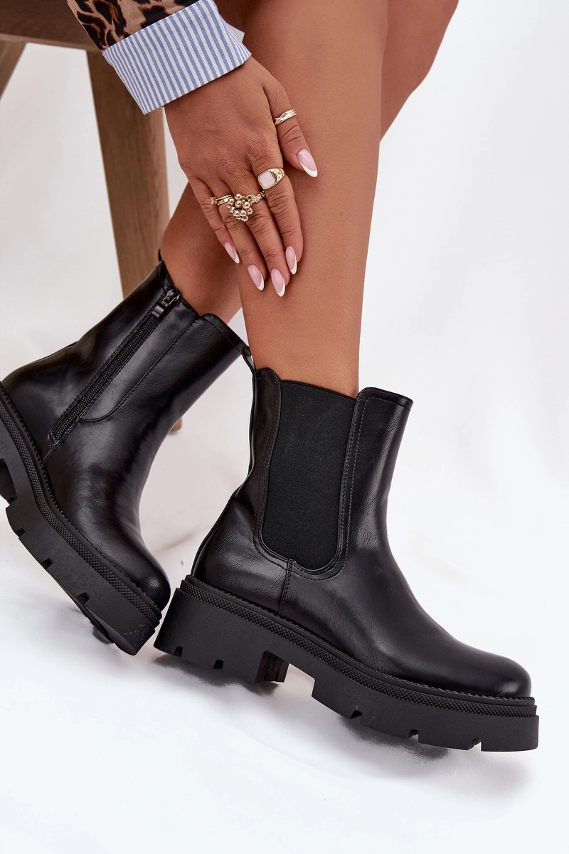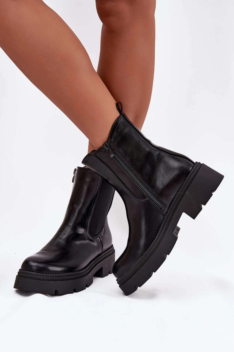 Ocieplane Botki Sztyblety Na Zamek Czarne Niviane