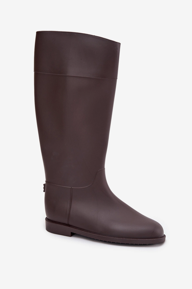 Wysokie Kalosze Damskie Na Płaskim Obcasie Czekoladowe Melianne