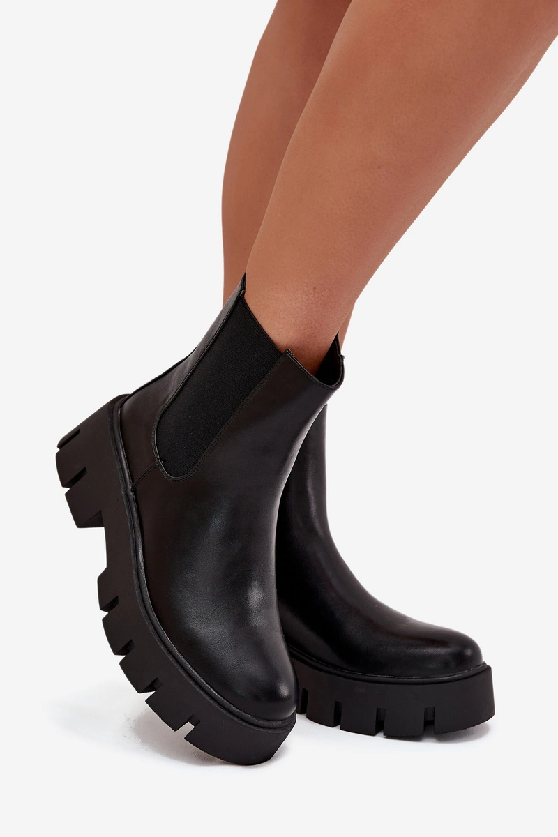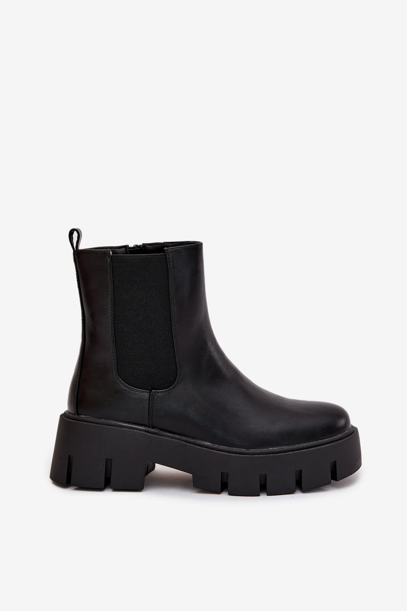 Botki Sztyblety Damskie Ocieplane Na Zamek Eko Skórzane Czarne Fivienne