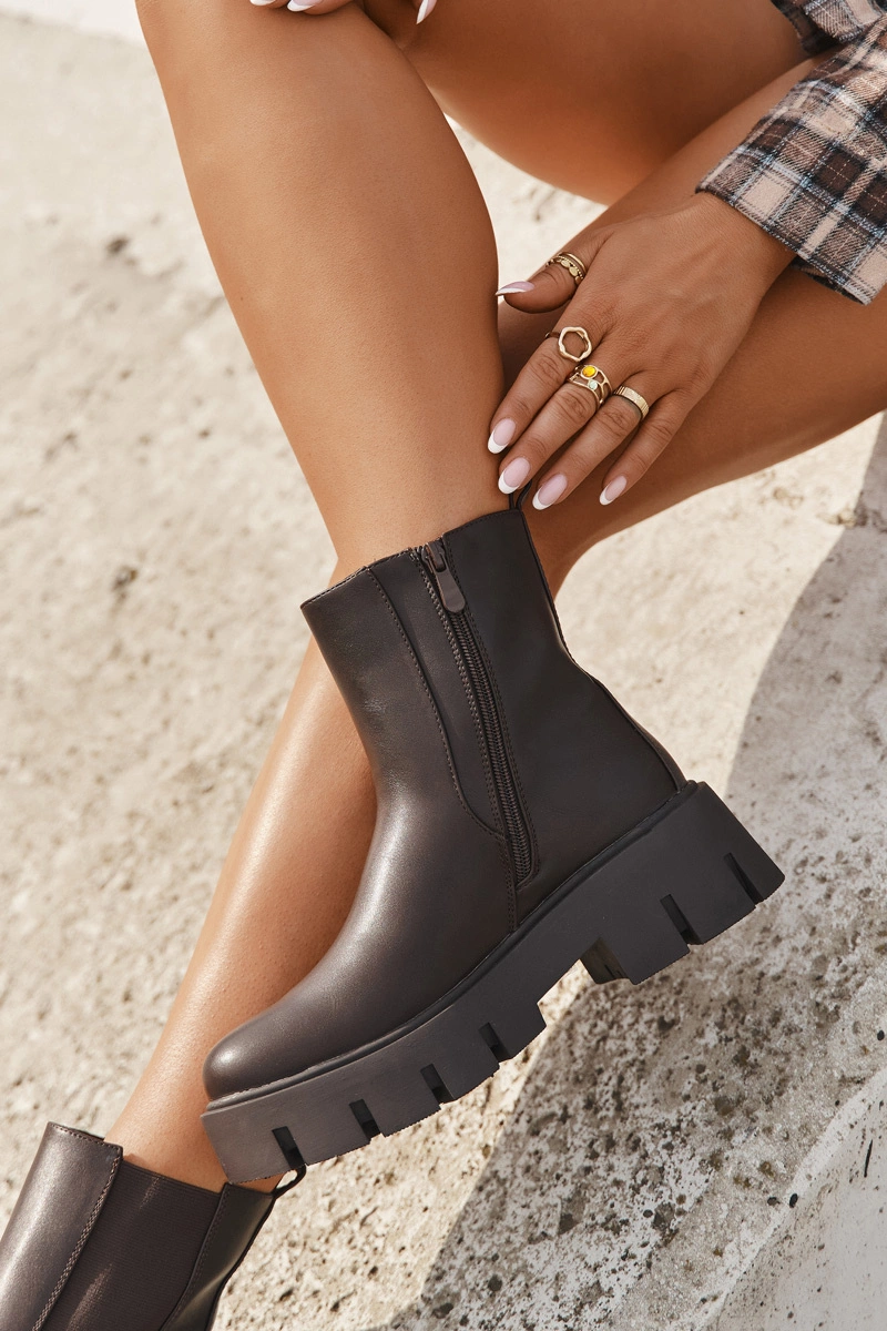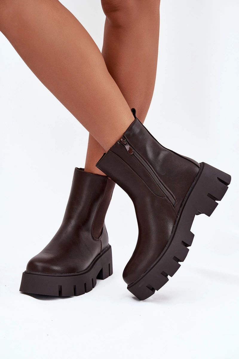Botki Sztyblety Damskie Ocieplane Na Zamek Eko Skórzane Ciemnobrązowe Fivienne