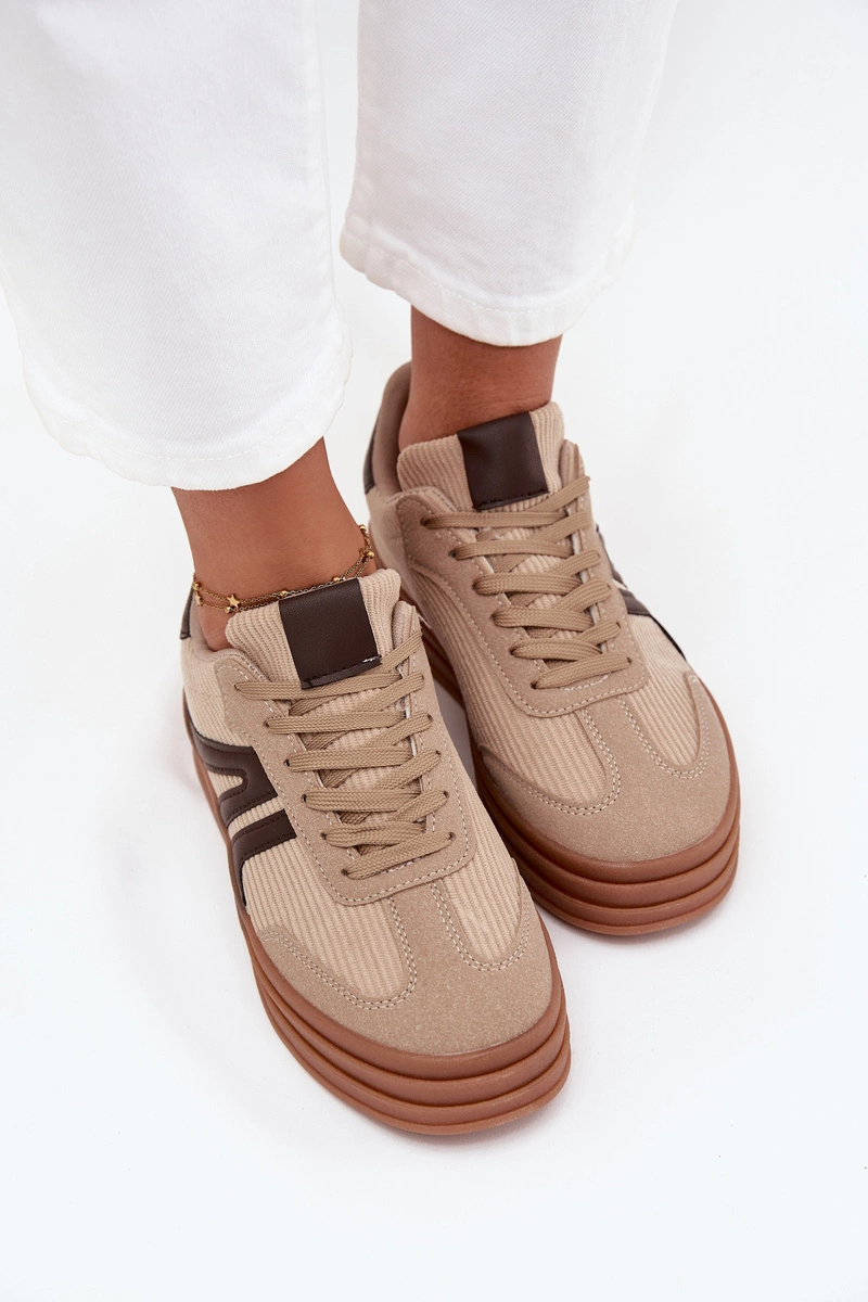 Sztruksowe Sneakersy Damskie Na Platformie Beżowe Corynelle