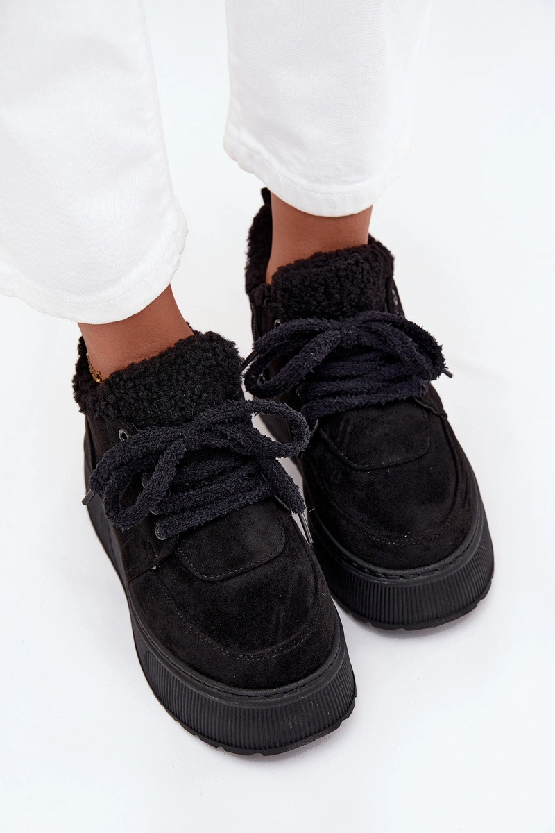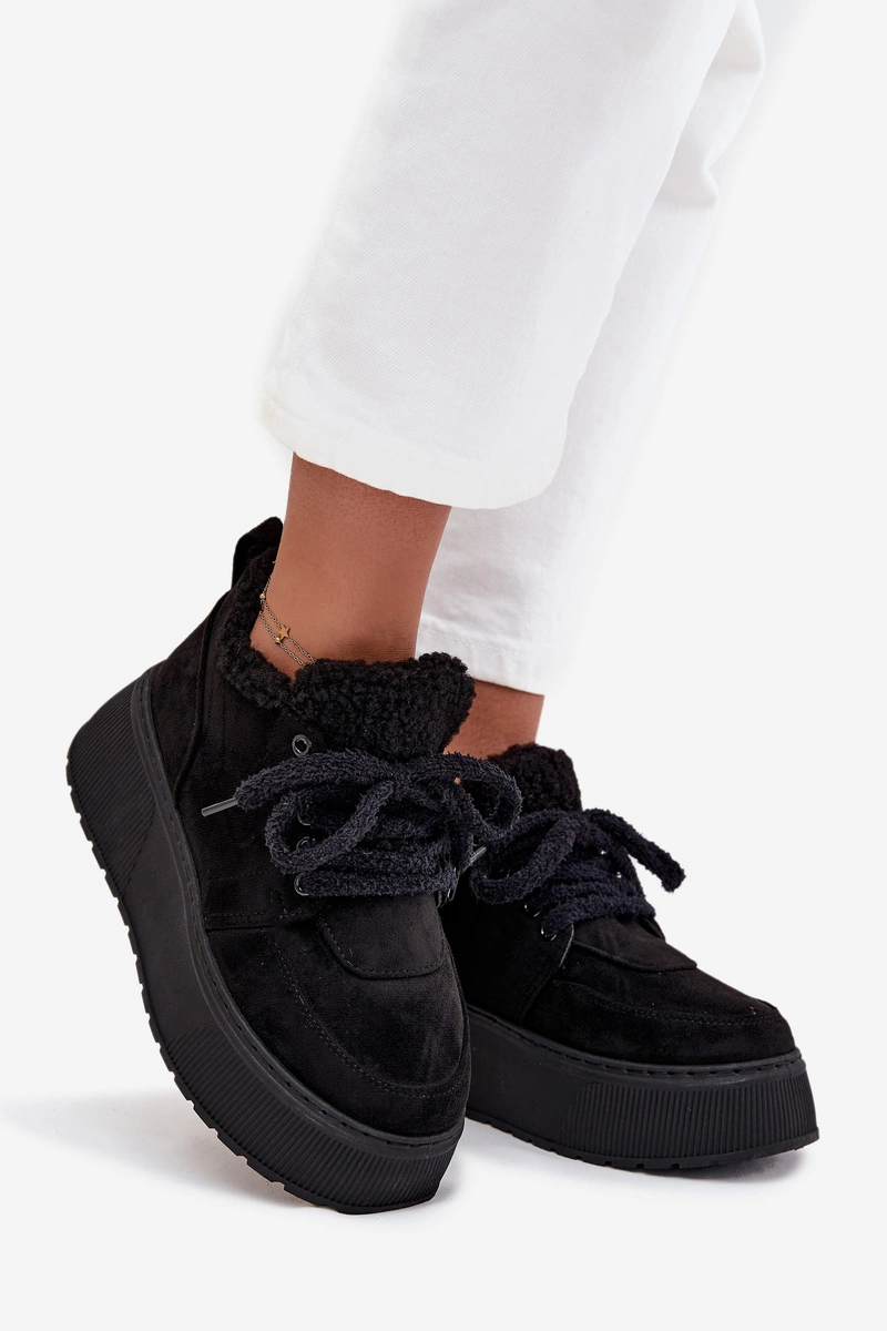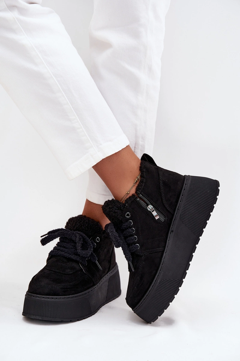 Śniegowce Damskie Na Platformie Z Futerkiem Typu Baranek Czarne Luma