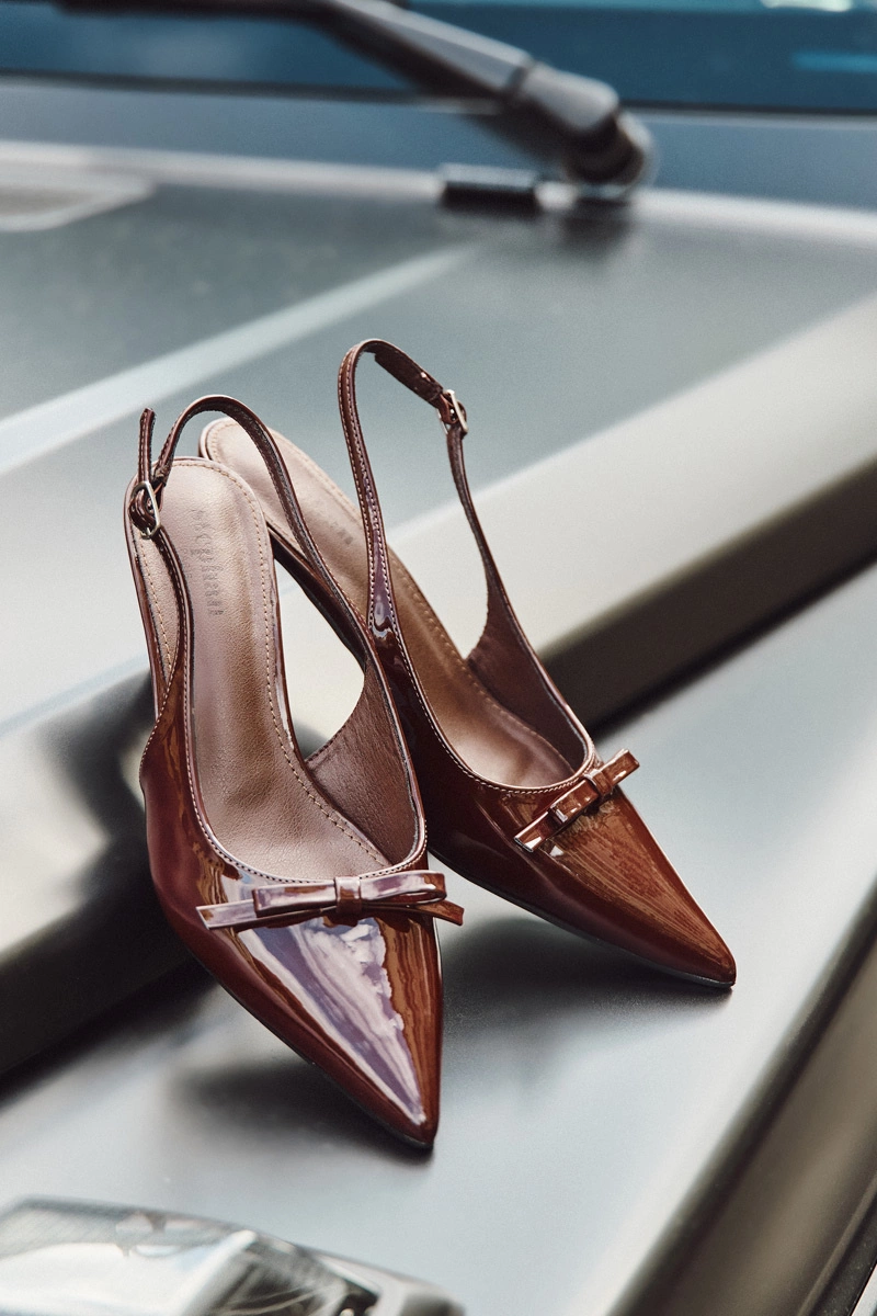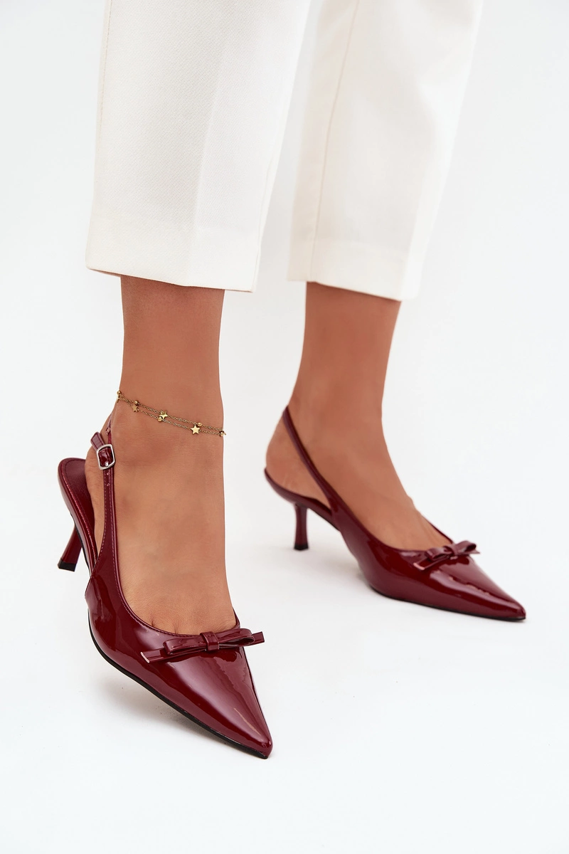 Lakierowane Czółenka Na Szpilce Z Kokardką Bordowe Olvena