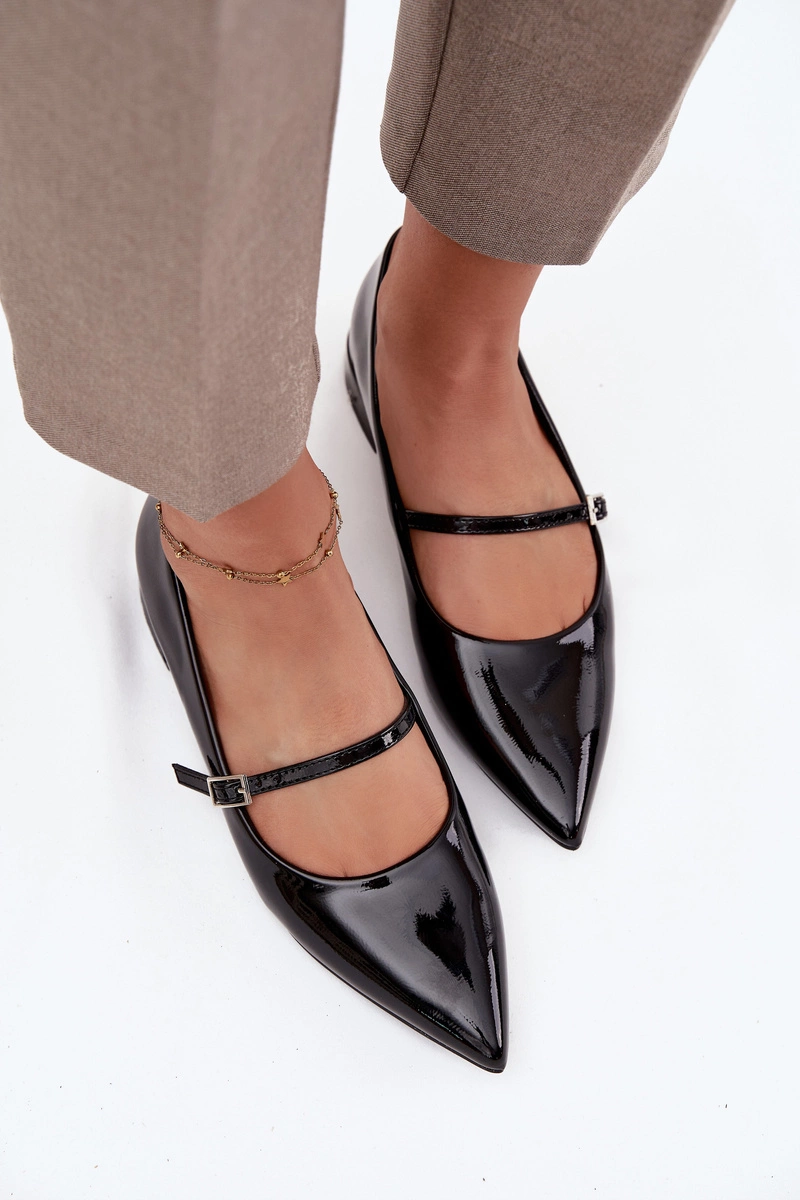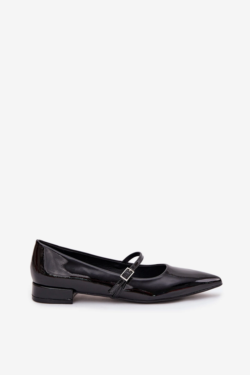 Lakierowane Baleriny Na Delikatnym Obcasie Z Paskiem Czarne Isvella