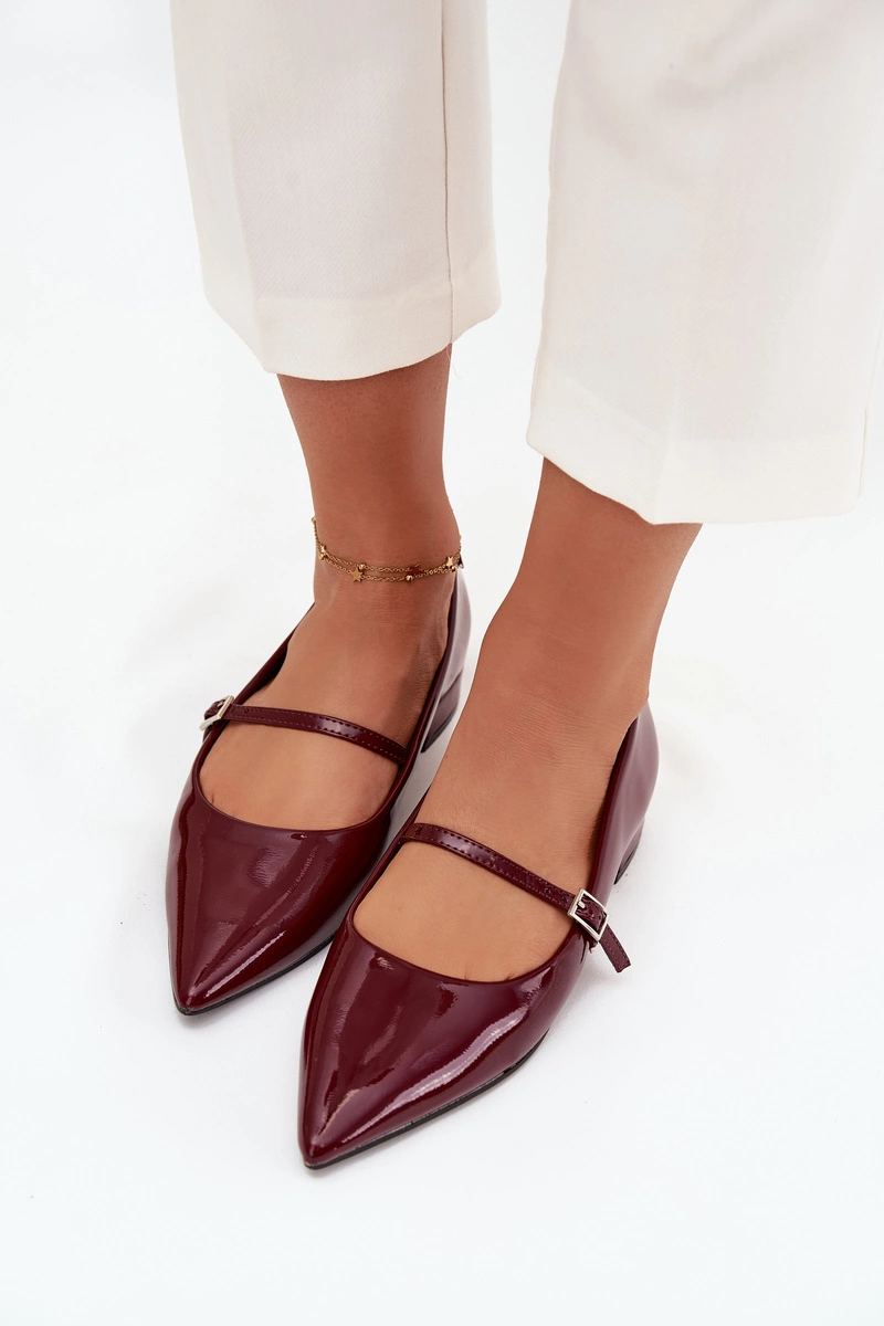 Lakierowane Baleriny Na Delikatnym Obcasie Z Paskiem Bordowe Isvella