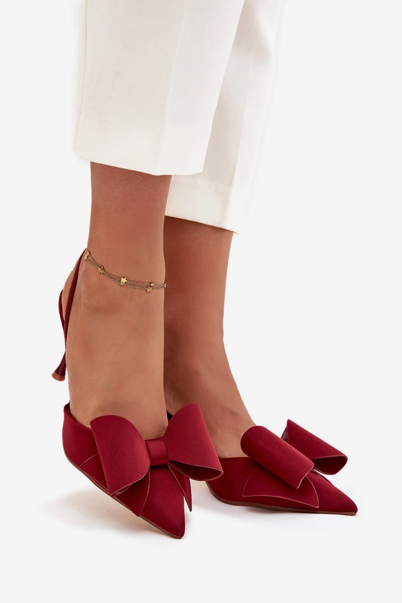 Szpilki Z Odkrytymi Piętami I Kokardką Bordowe Eklevia