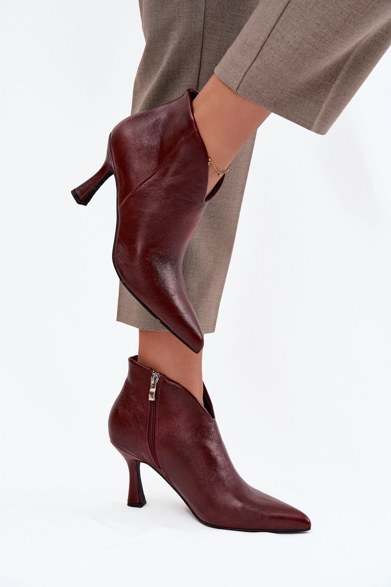 Lakierowane Niskie Botki Damskie Na Szpilce Bordowe Jolivra