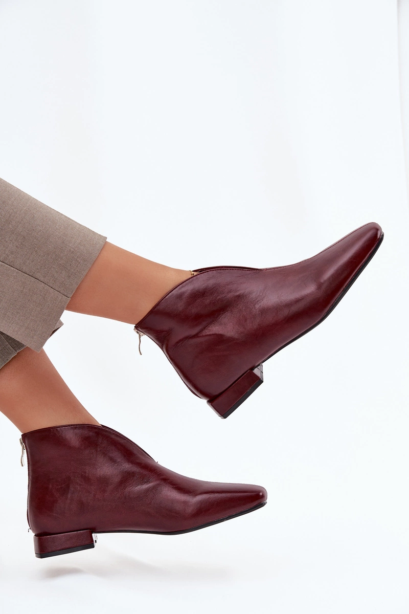 Botki Damskie Na Delikatnym Obcasie Bordowe Elvienne