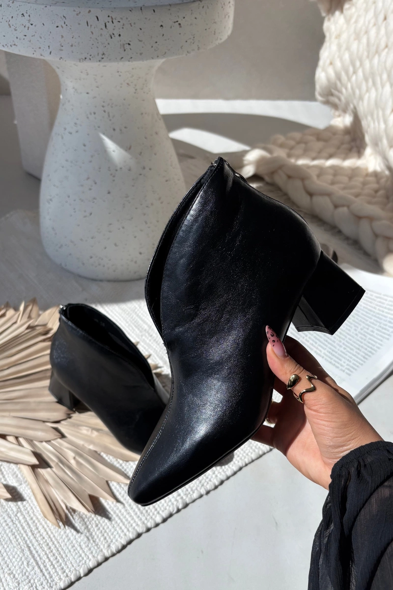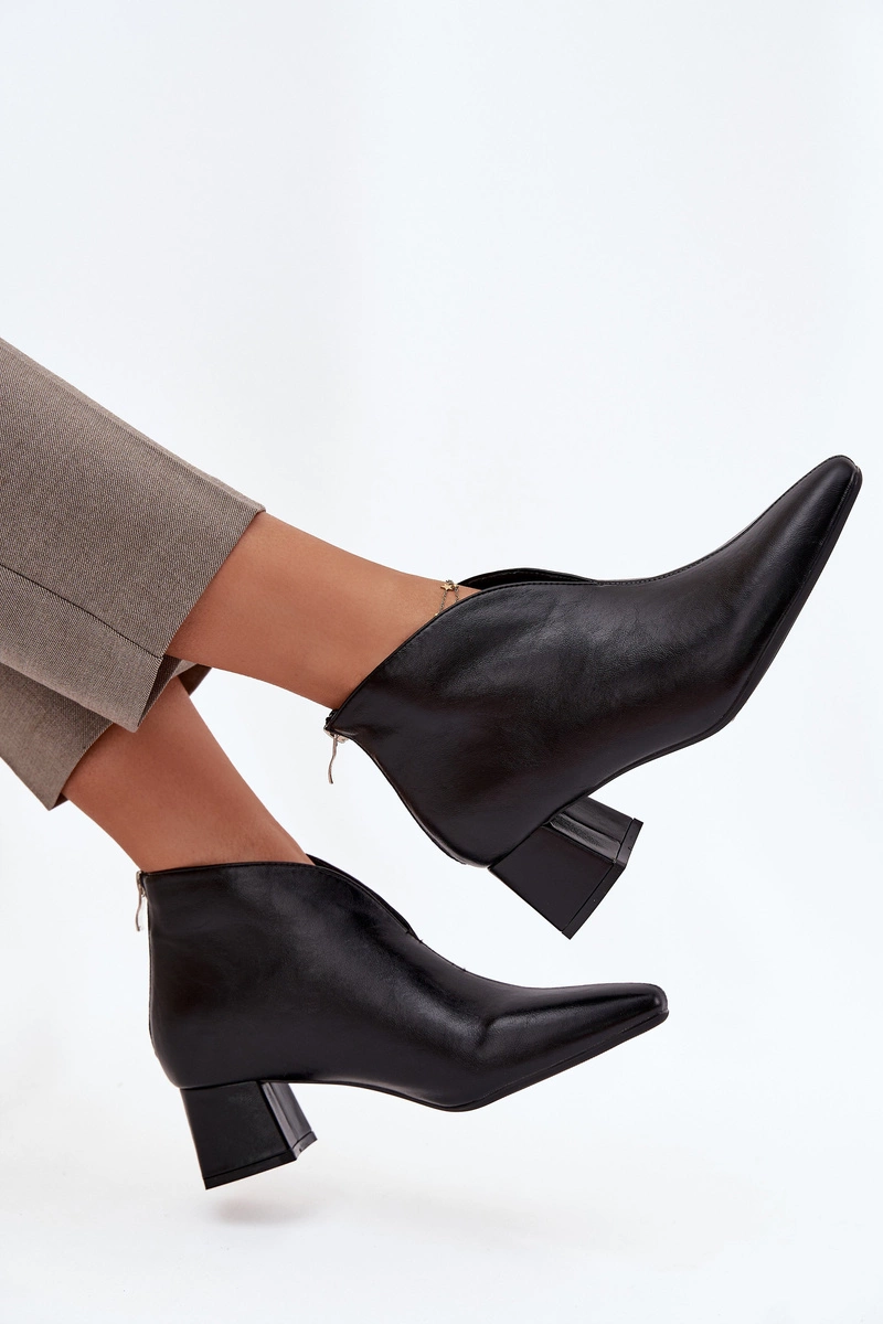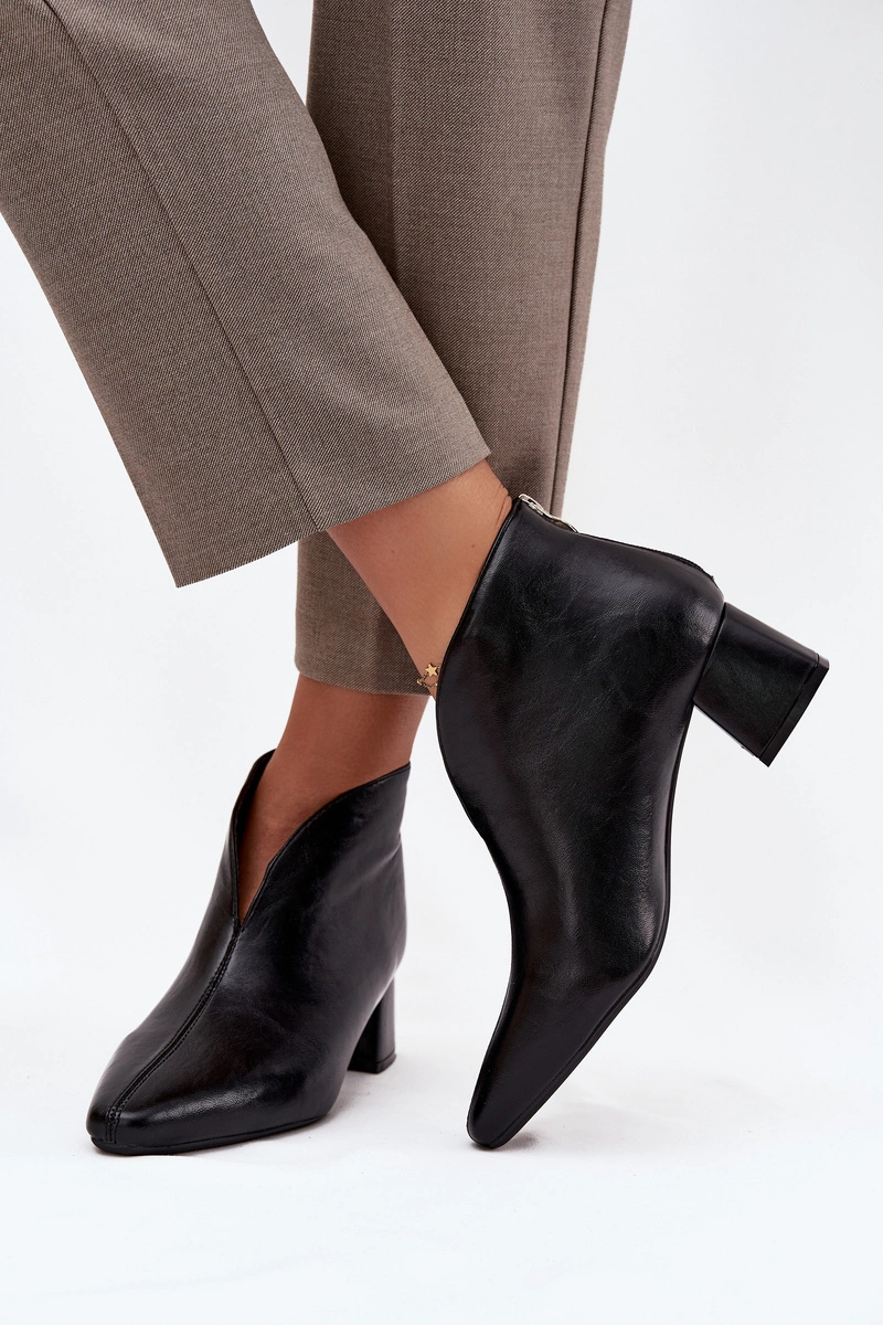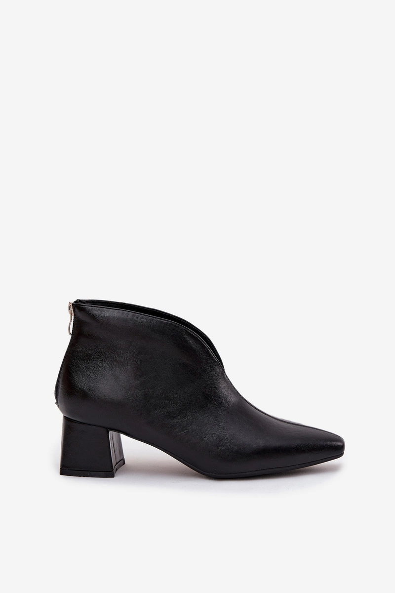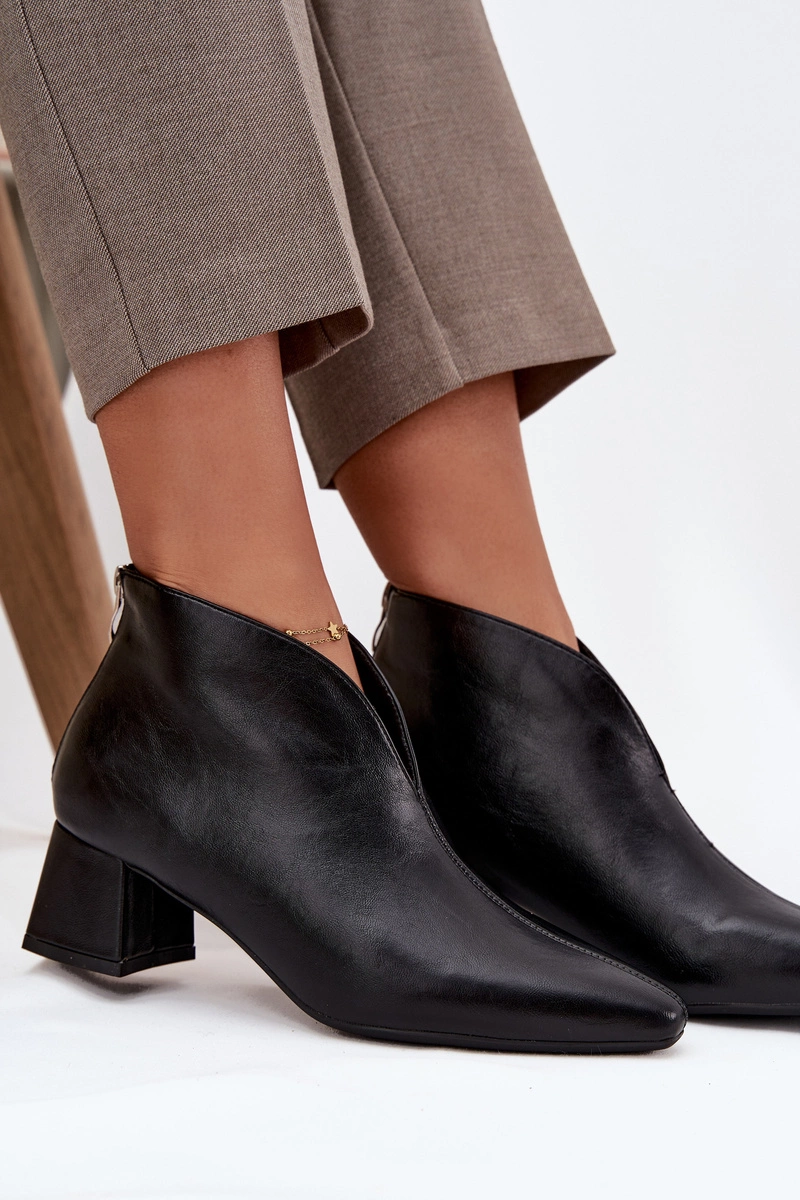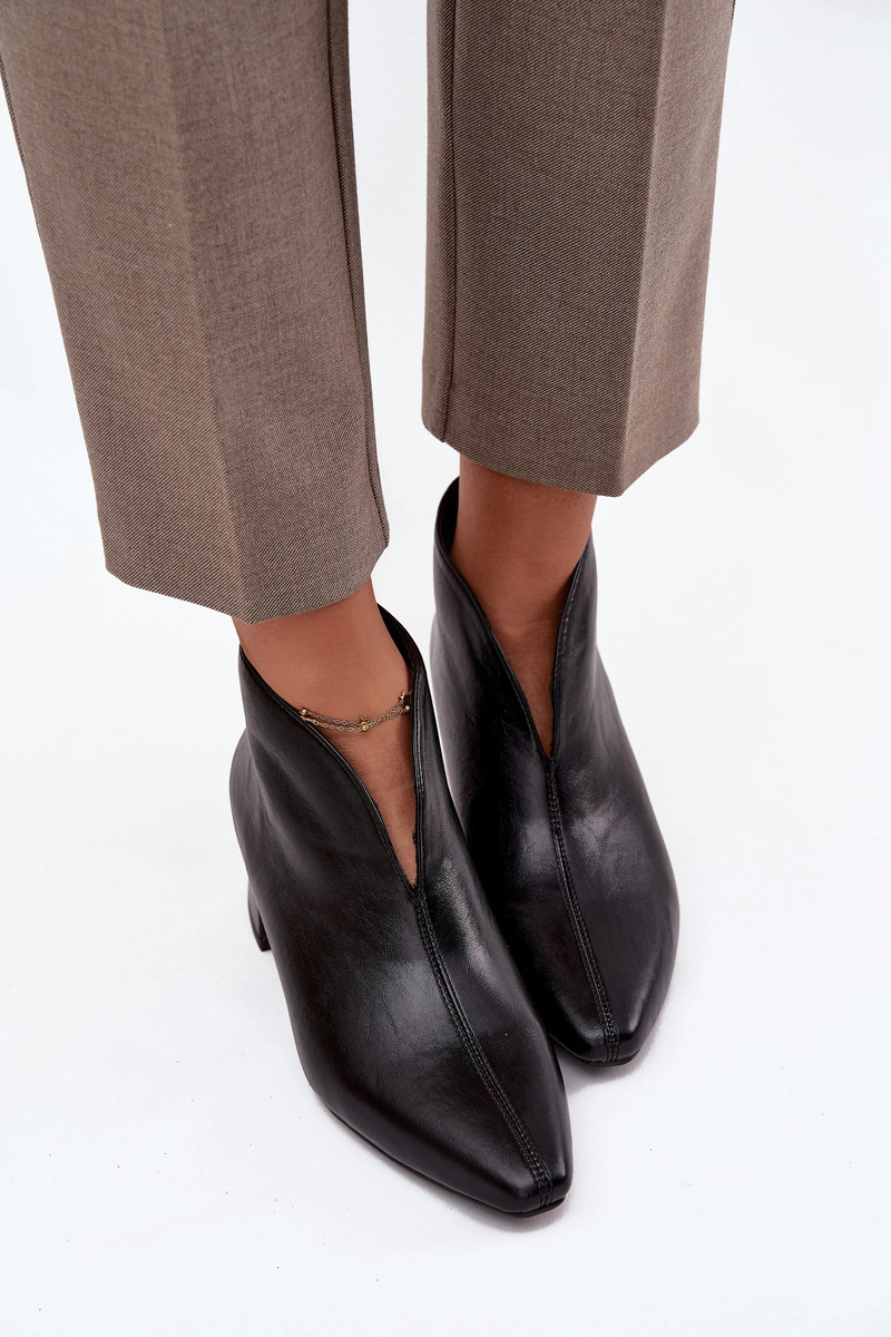 Eko Skórzane Botki Damskie Na Obcasie Czarne Rylina