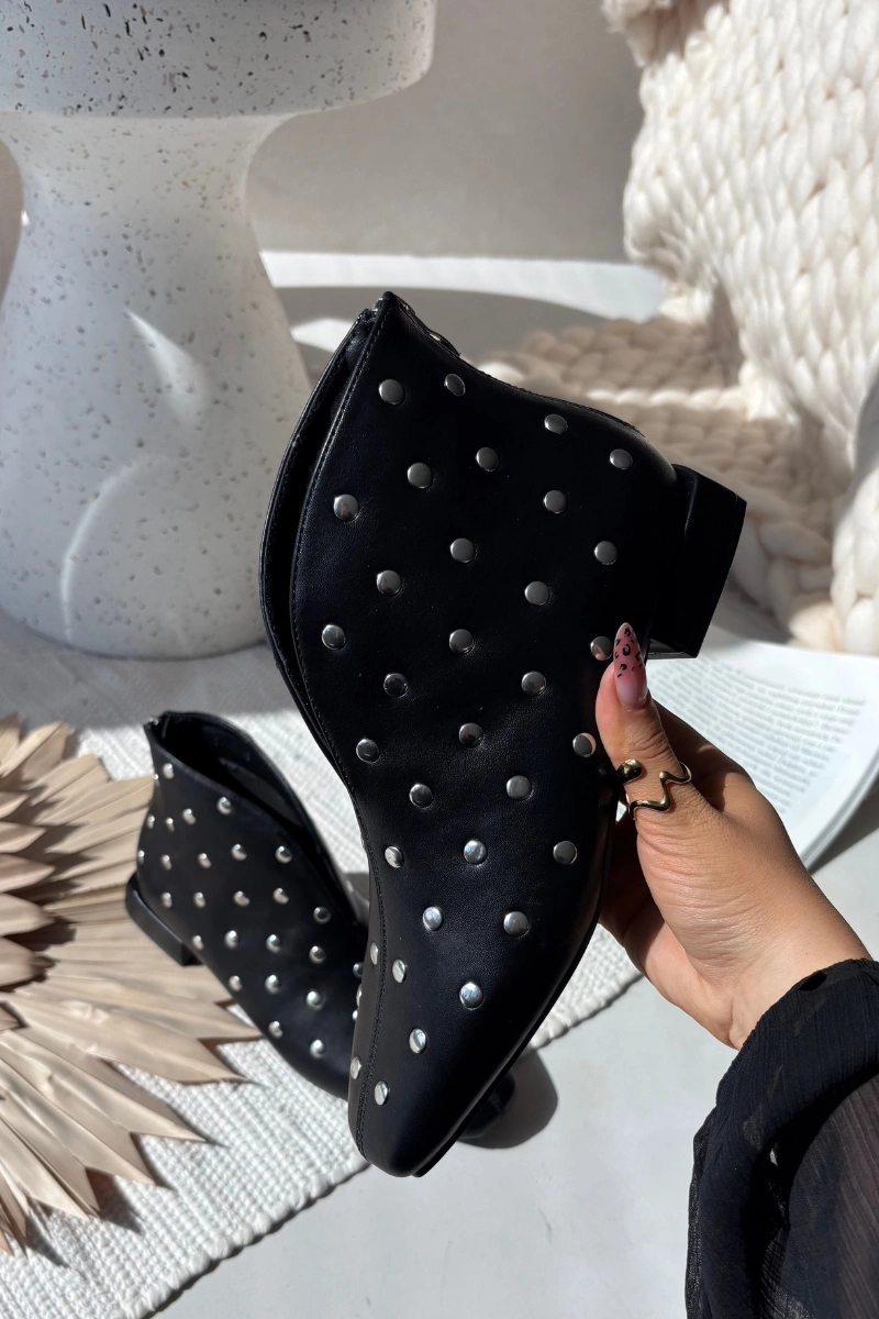Botki Damskie Na Delikatnym Obcasie Ze Srebrnym Zdobieniem Czarne Rosalind