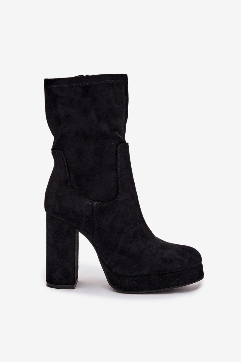 Botki Damskie Na Słupku Z Eko Zamszu Czarne Carolina