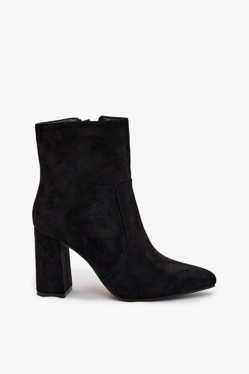 Ocieplane Botki Damskie Na Słupku Z Eko Zamszu Czarne Pralina