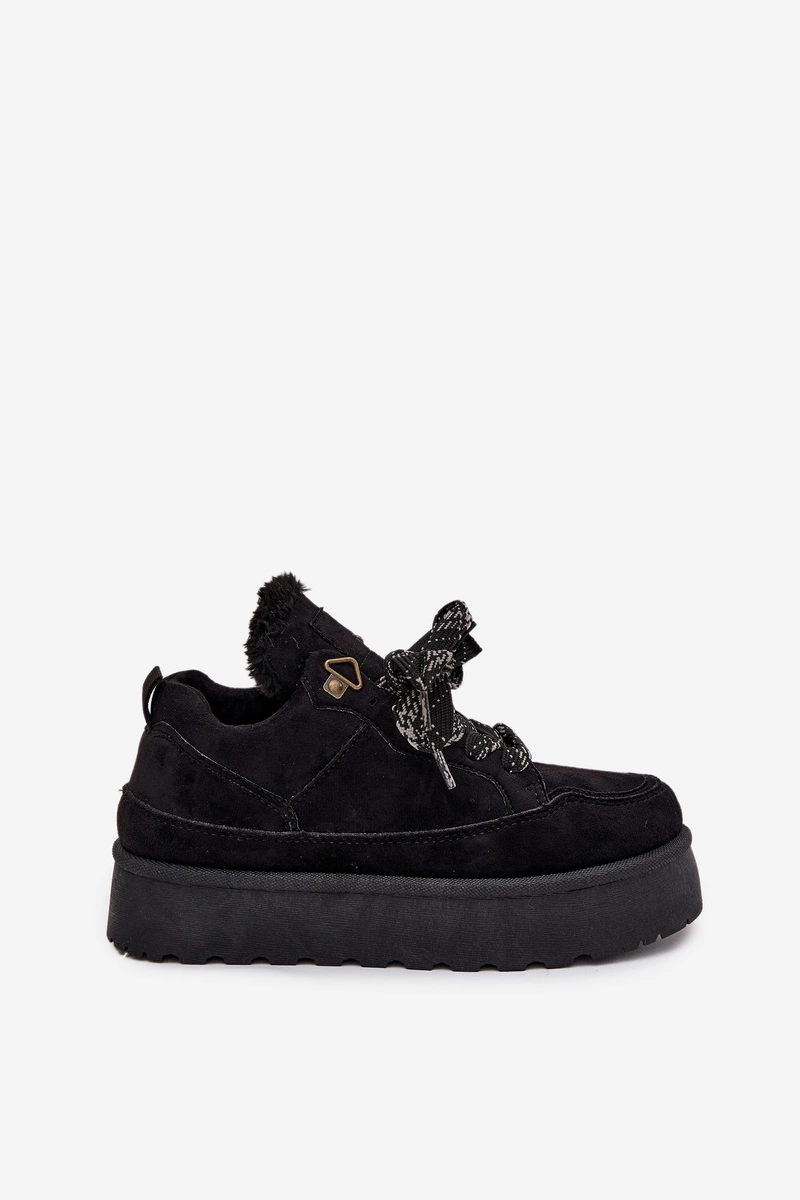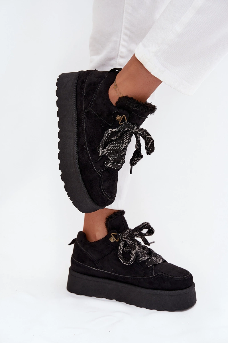 Sznurowane Śniegowce Damskie Na Platformie Ocieplane Futerkiem Czarne Tavelle