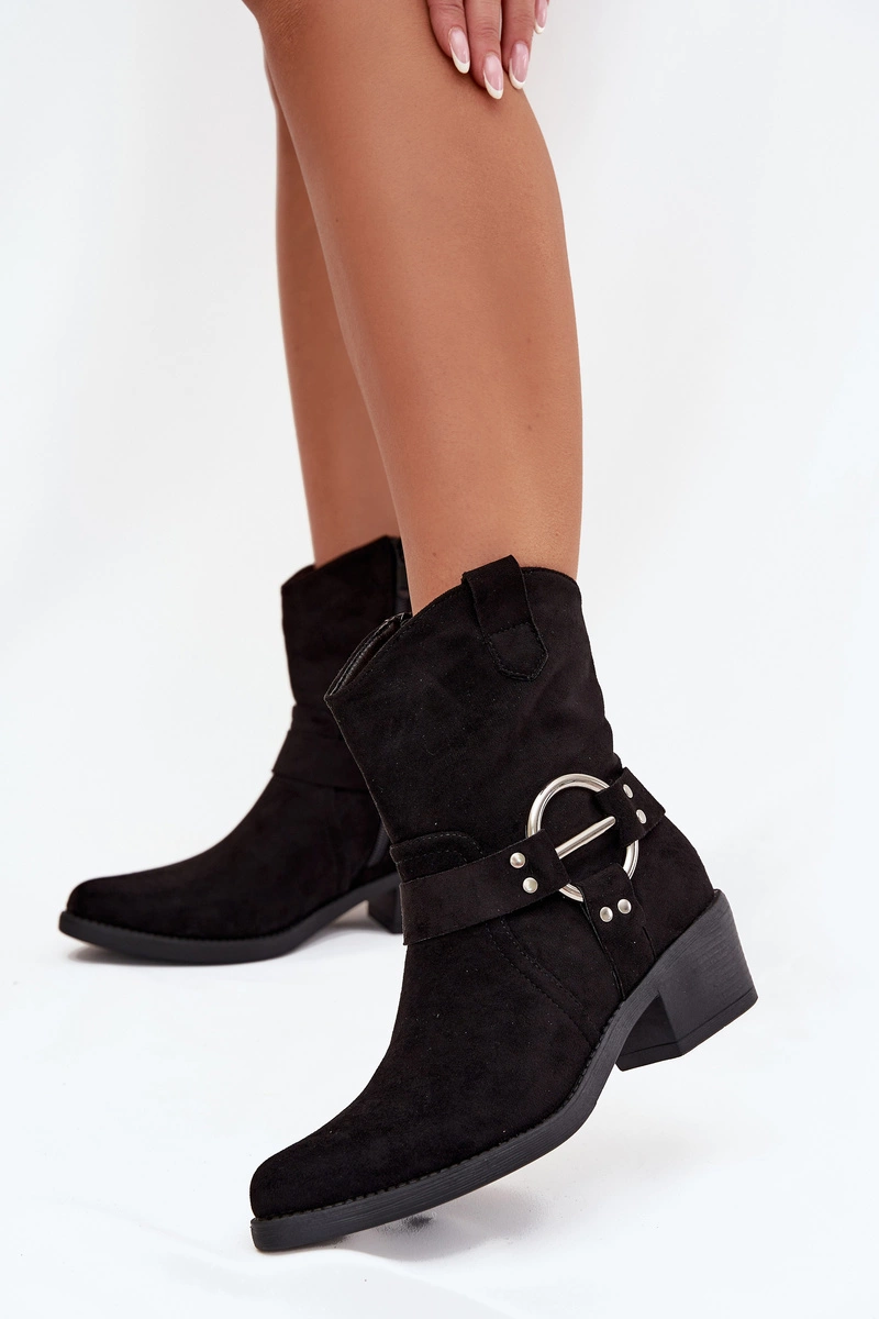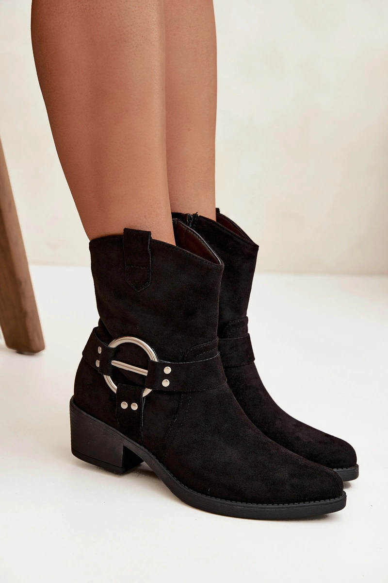 Botki Kowbojki Damskie Na Obcasie Z Ozdobnym Detalem Czarne Halivine