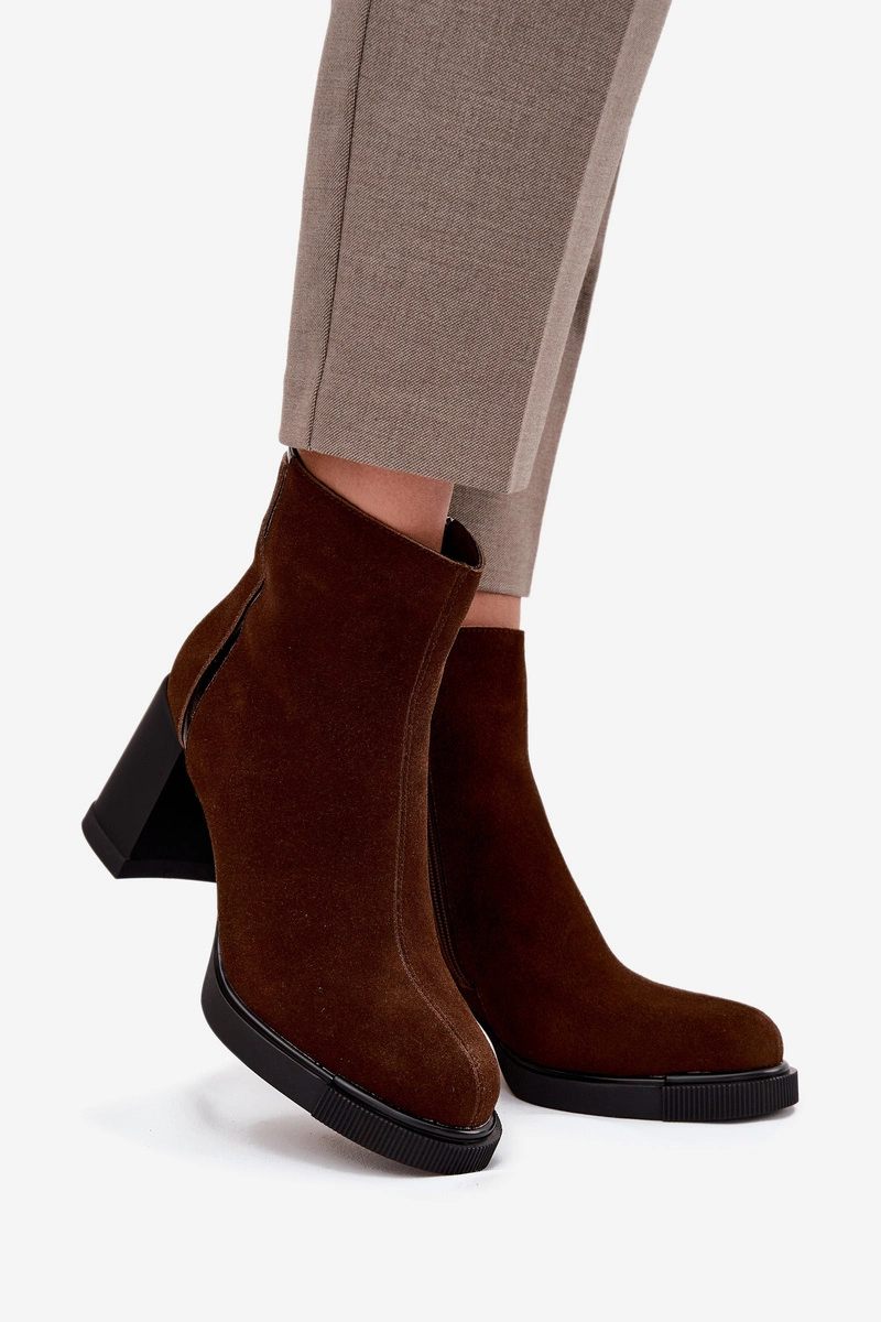 Botki Damskie Z Naturalnego Zamszu Na Słupku Ocieplane Vinceza 91141 Brązowe