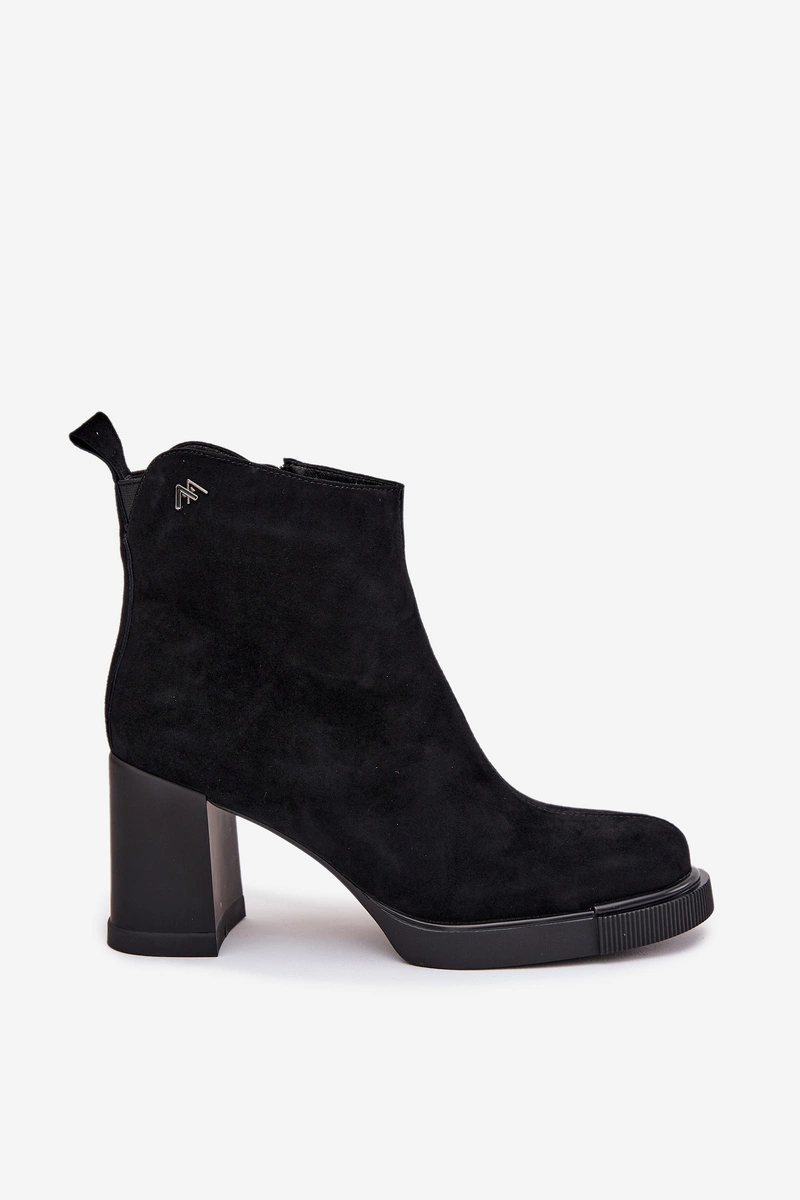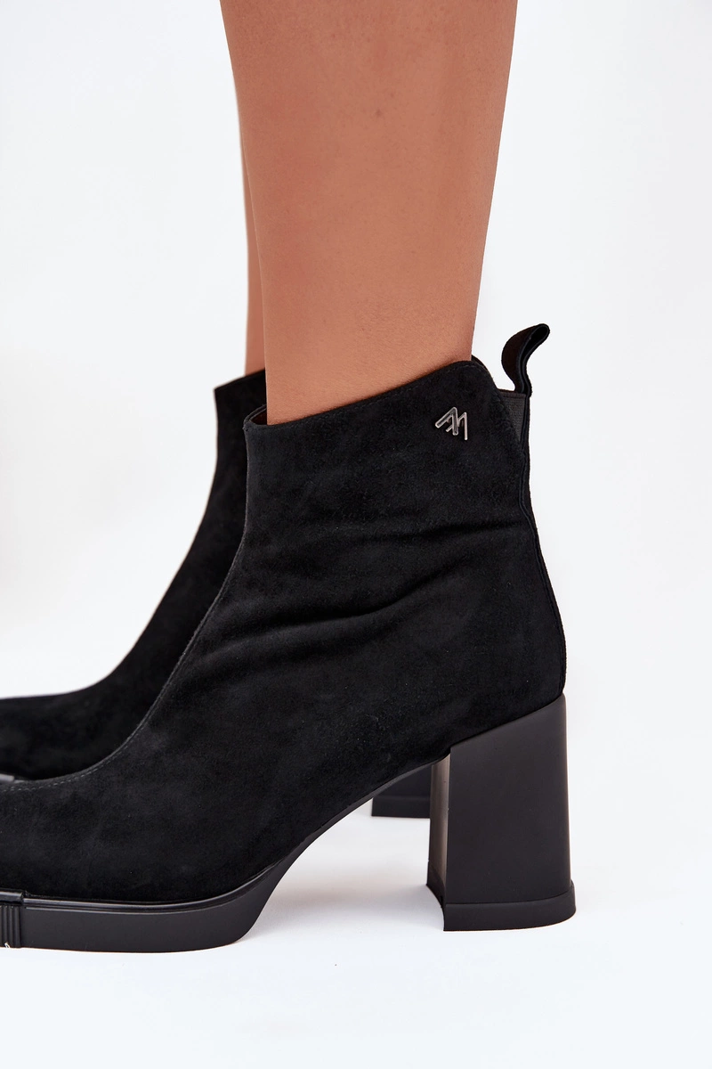 Zamszowe Skórzane Botki Damskie Na Słupku Vinceza 91142 Czarne