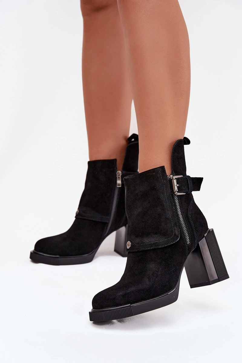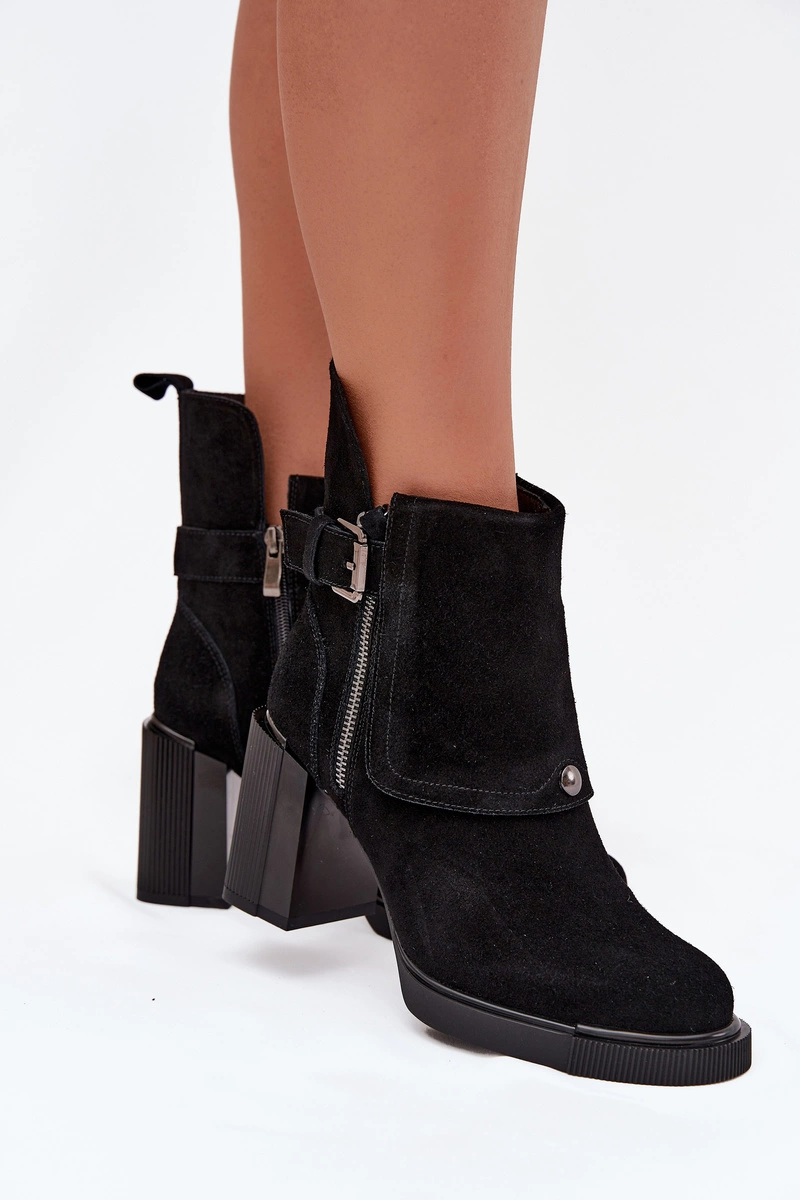 Botki Z Naturalnego Zamszu Na Słupku Z Klamrą Vinceza 91152 Czarne