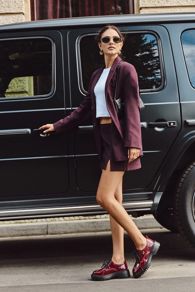 Lakierowane Skórzane Półbuty Damskie Z Przypinkami Artiker 57C0336 Bordowe