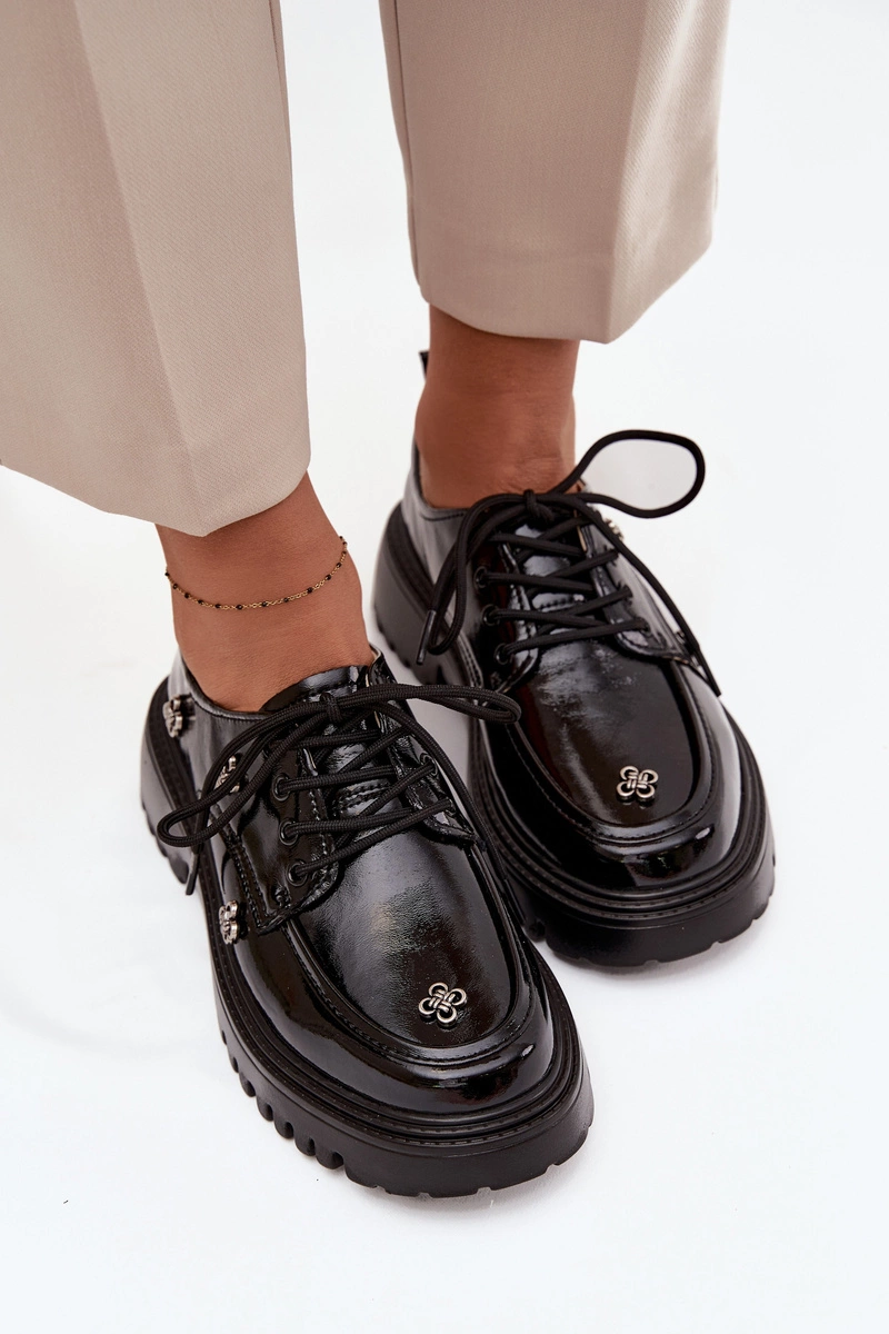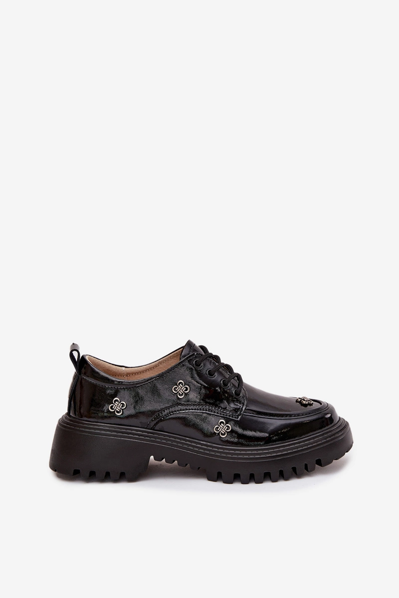 Lakierowane Skórzane Półbuty Damskie Z Przypinkami Artiker 57C0333 Czarne