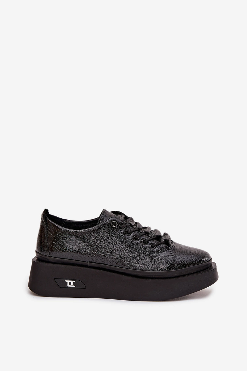 Skórzane Lakierowane Półbuty Damskie Na Platformie Artiker 57C2041 Czarne