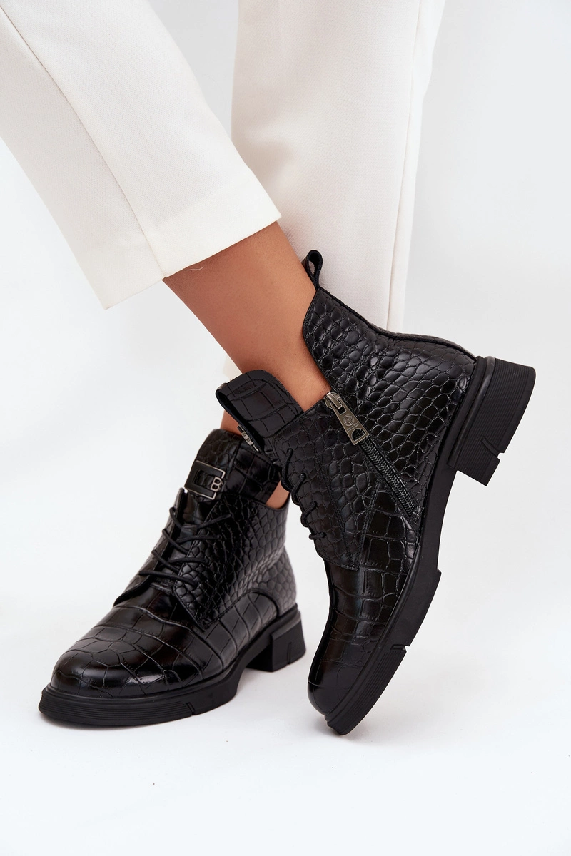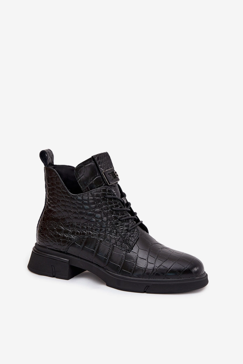 Skórzane Botki Z Ozdobnym Tłoczeniem Ocieplane Vinceza 66815 Czarne