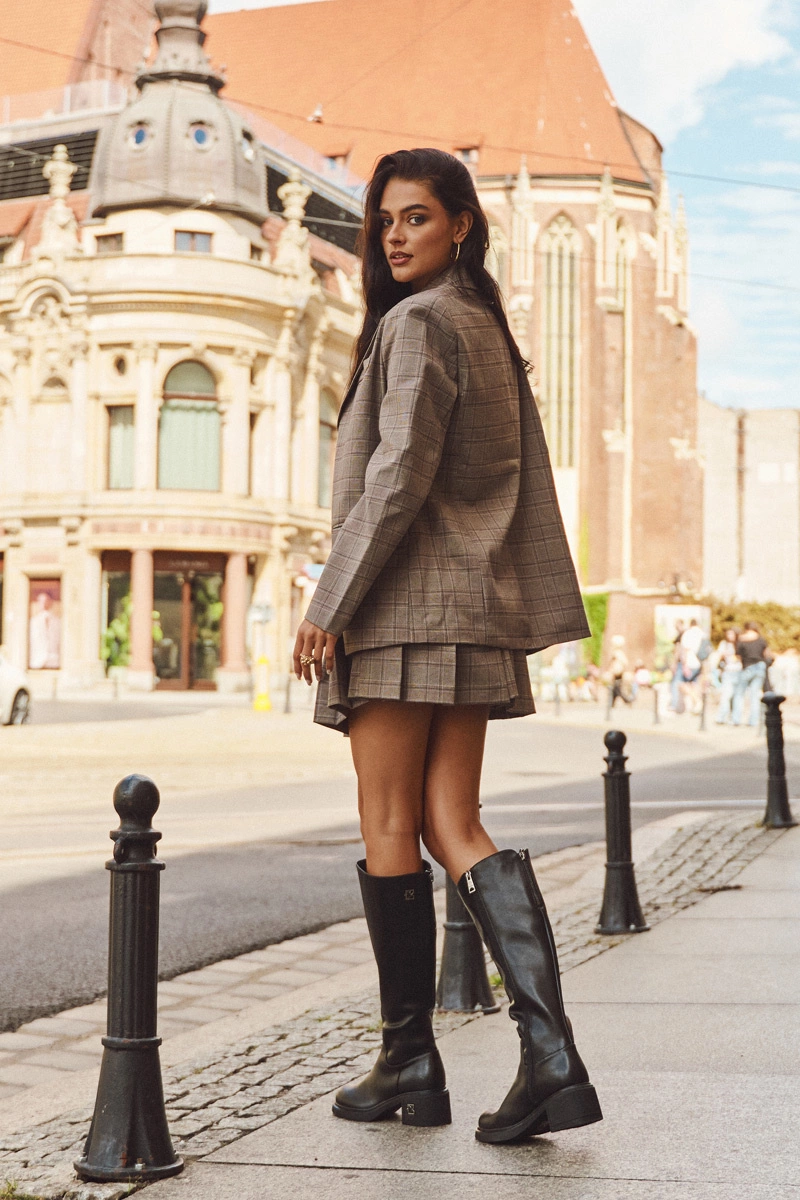 Kozaki damskie wykonane z naturalnej skóry to elegancka i praktyczna propozycja na chłodniejsze dni. Osadzone na niskim obcasie typu klocek zapewniają wygodę i stabilność, a klasyczne, zaokrąglone noski nadają im ponadczasowego charakteru. Model zapinany na praktyczny zamek jest łatwy w użytkowaniu, a ocieplane wnętrze gwarantuje komfort i ciepło. Uwagę przyciągają subtelne detale zdobiące górę cholewki oraz obcas, które dodają całości wyjątkowego, stylowego akcentu. To uniwersalne kozaki idealne zarówno na co dzień, jak i do eleganckich stylizacji. Przy wyborze rozmiaru prosimy sugerować się tabelą rozmiarów.