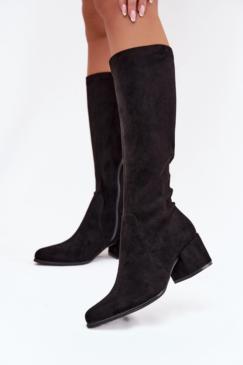 Kozaki Damskie Na Niskim Obcasie Eko Zamszowe Sergio Leone KZ212 Czarne