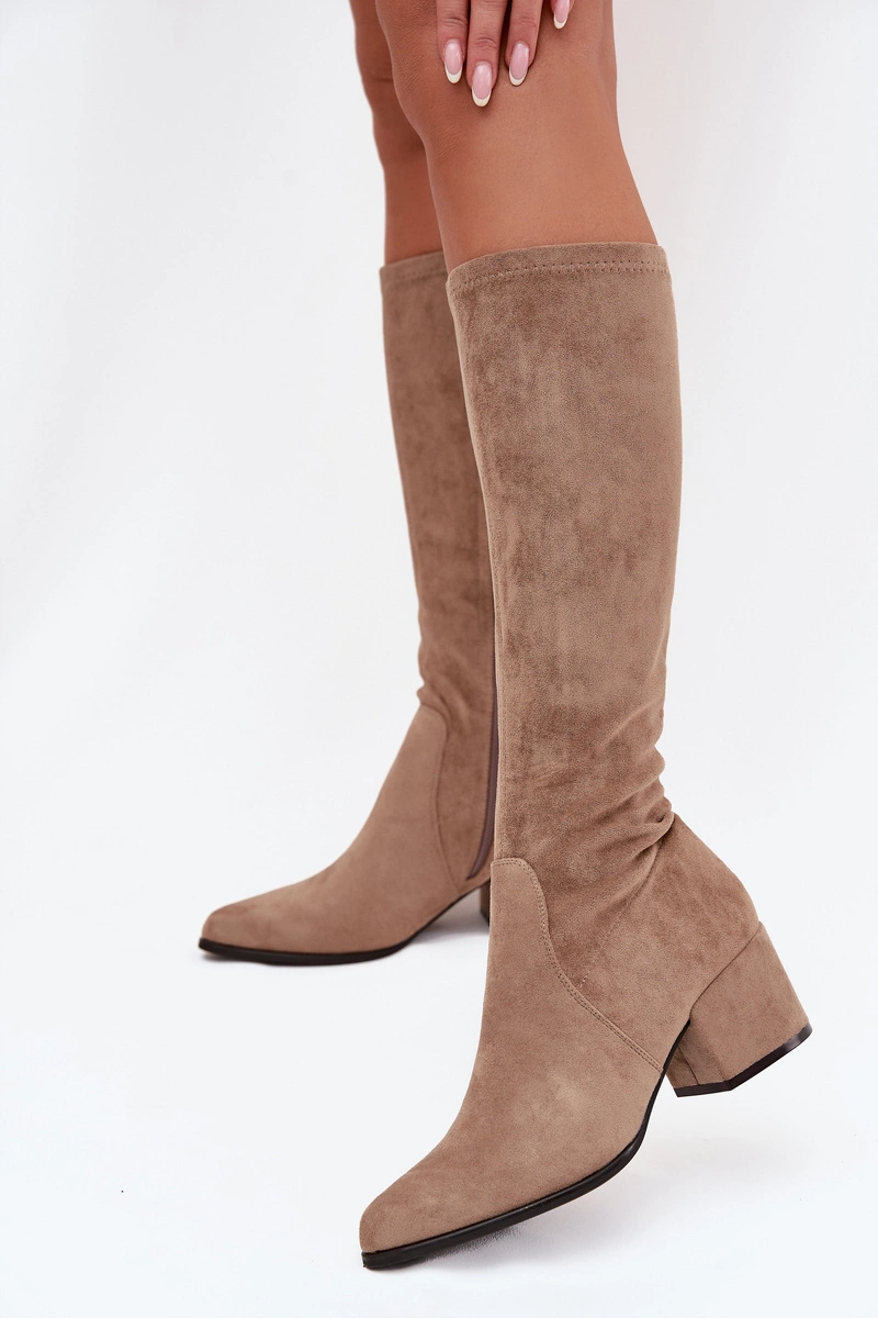 Kozaki Damskie Na Niskim Obcasie Eko Zamszowe Sergio Leone KZ212 Beżowe