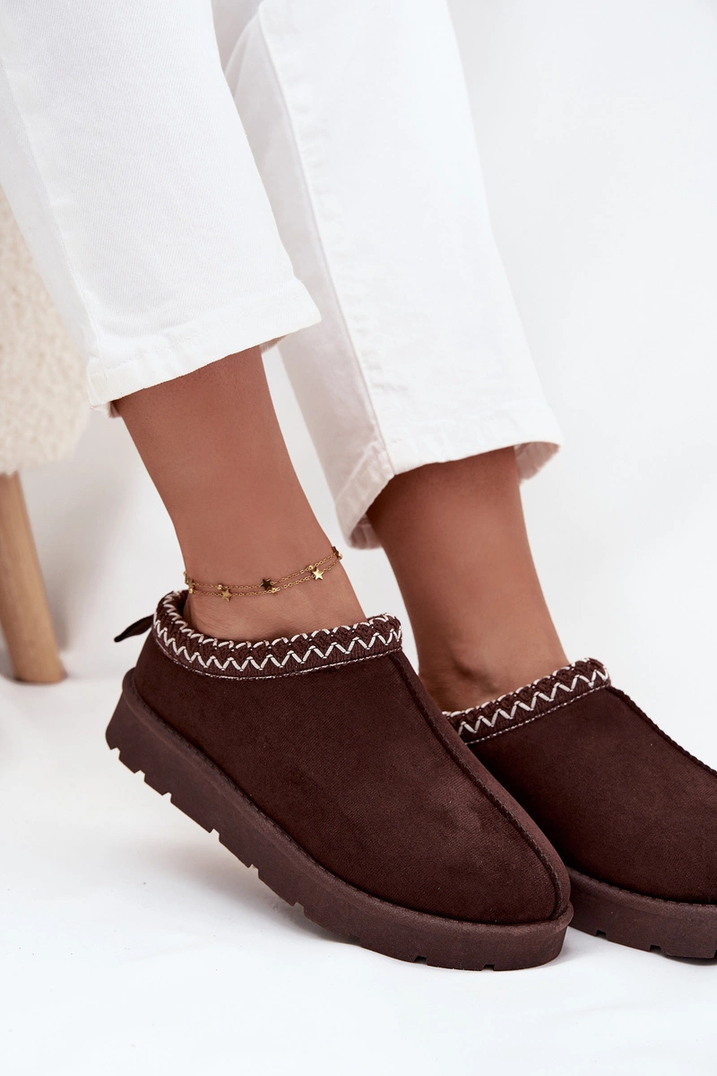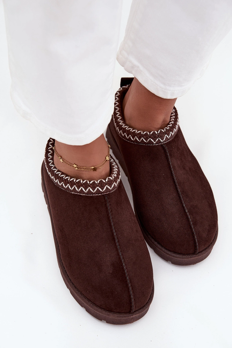 Niskie Śniegowce Damskie Z Haftem Czekoladowe Juvielle