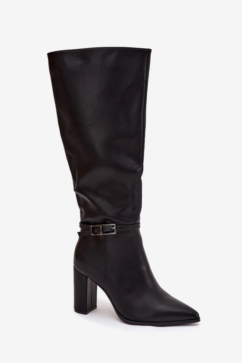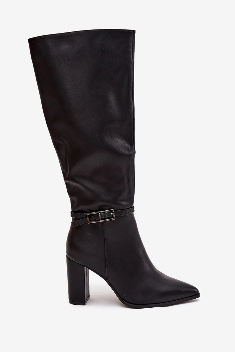 Kozaki Damskie Ocieplane Na Słupku Z Klamrą Czarne Fionelle