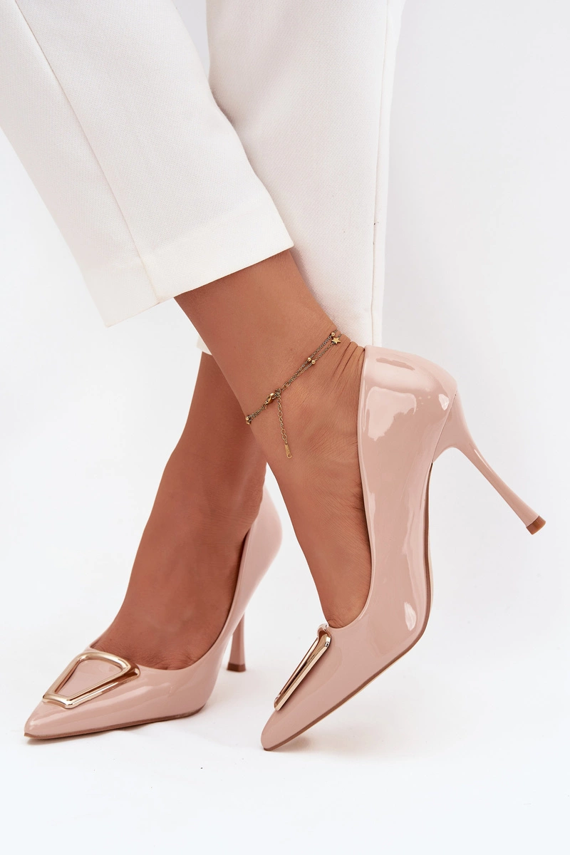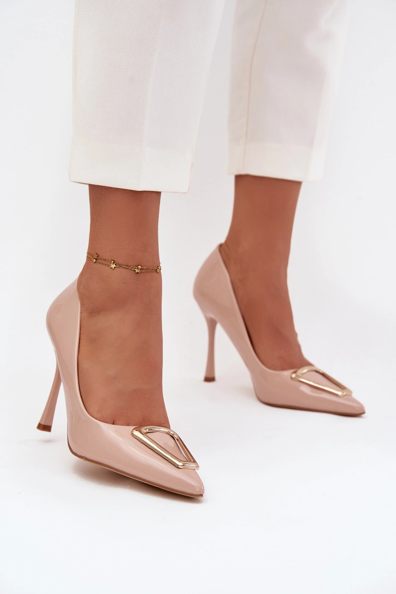 Lakierowane Szpilki Ze Złotym Detalem Beżowe Paivelle