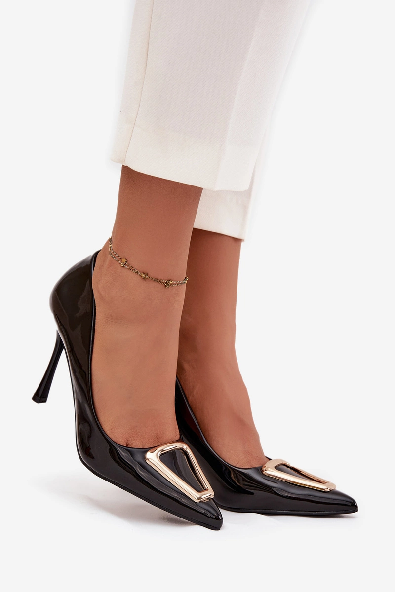 Lakierowane Szpilki Ze Złotym Detalem Czarne Paivelle