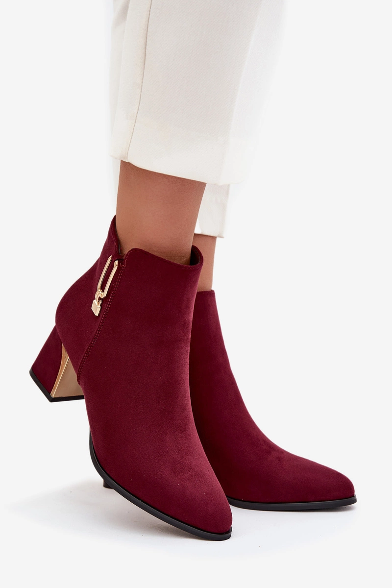 Botki Damskie Na Słupku Ze Złotymi Detalami Bordowe Kalivra