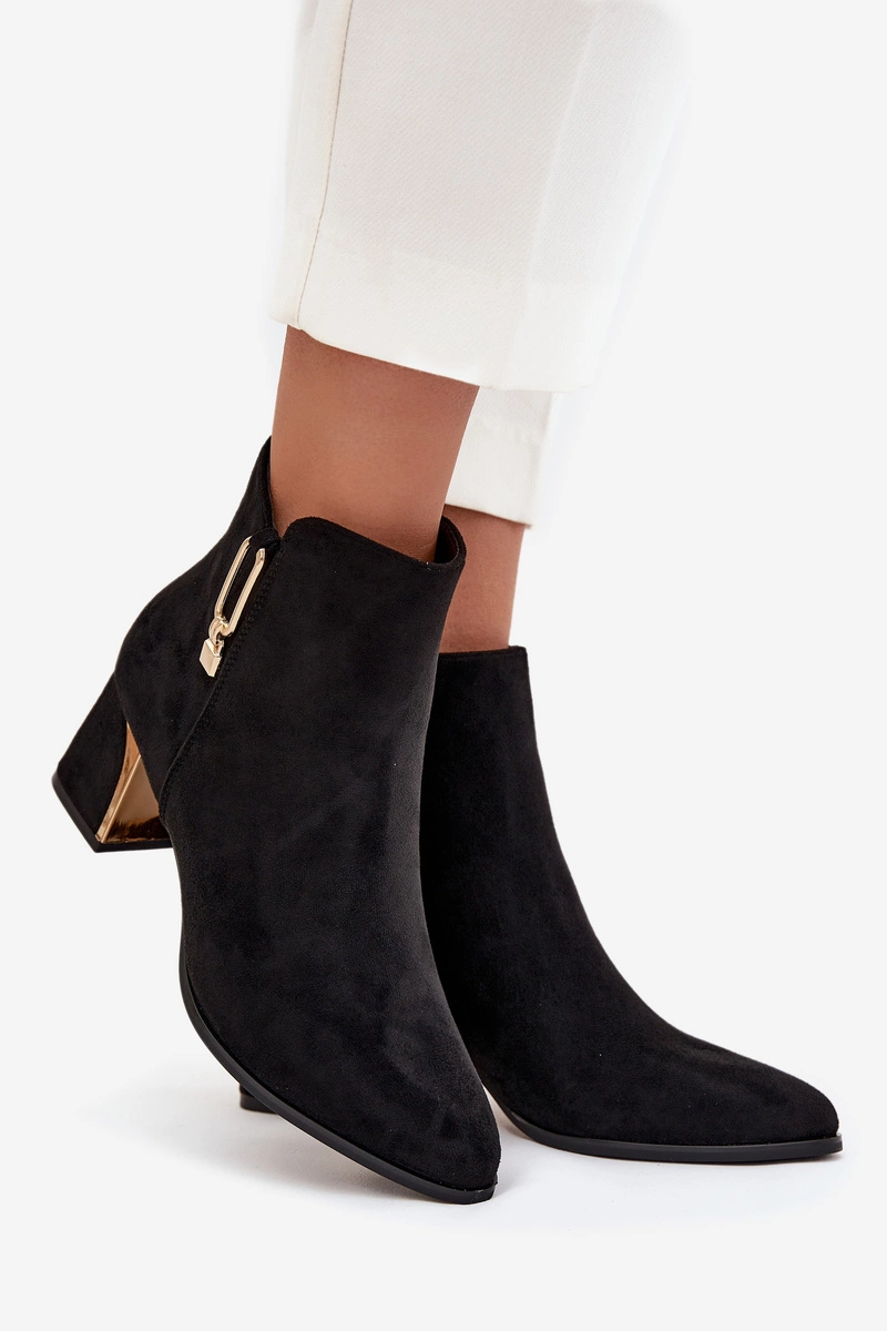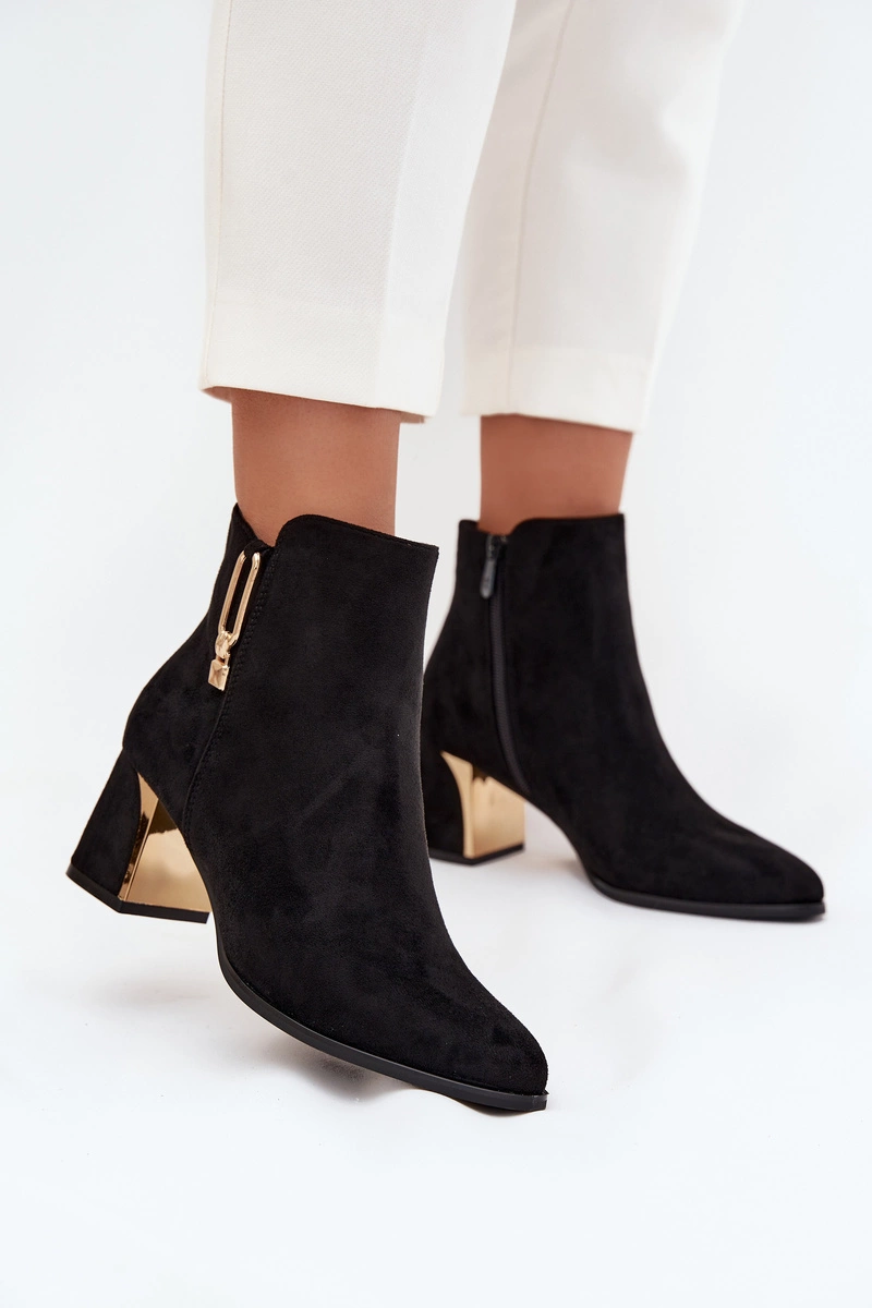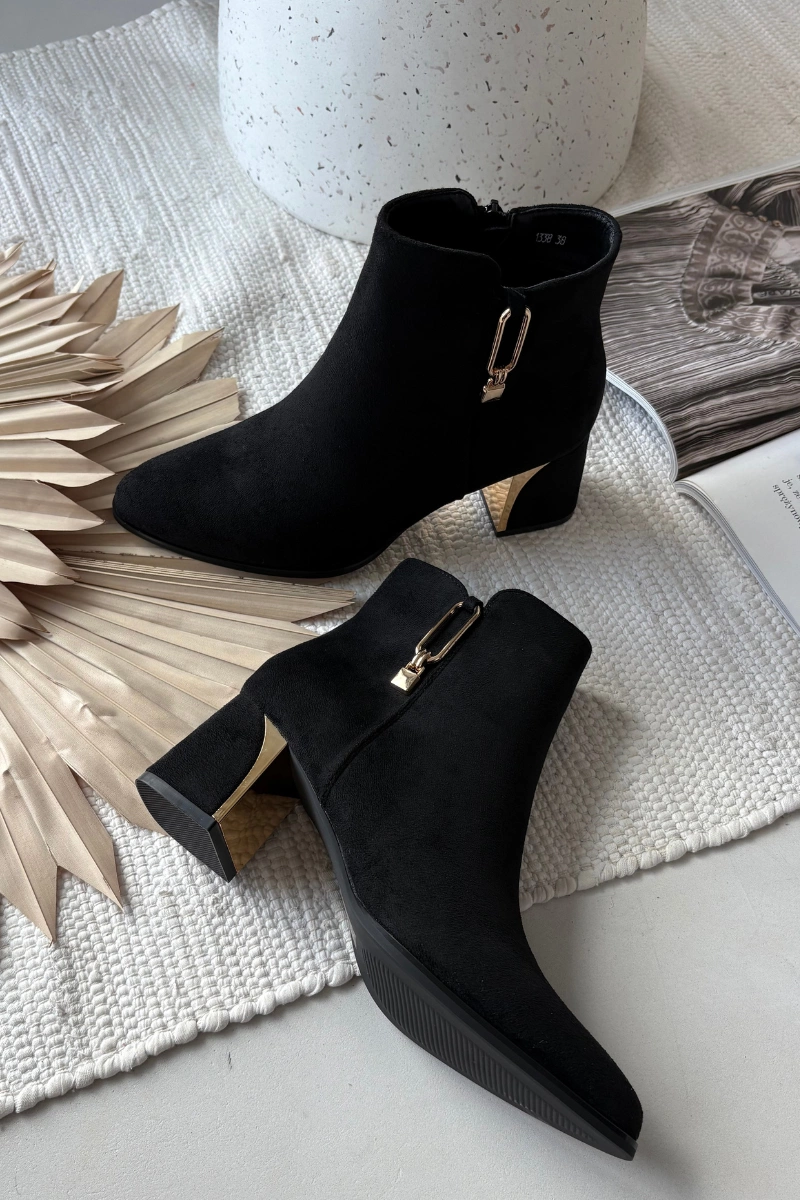 Botki Damskie Na Słupku Ze Złotymi Detalami Czarne Kalivra