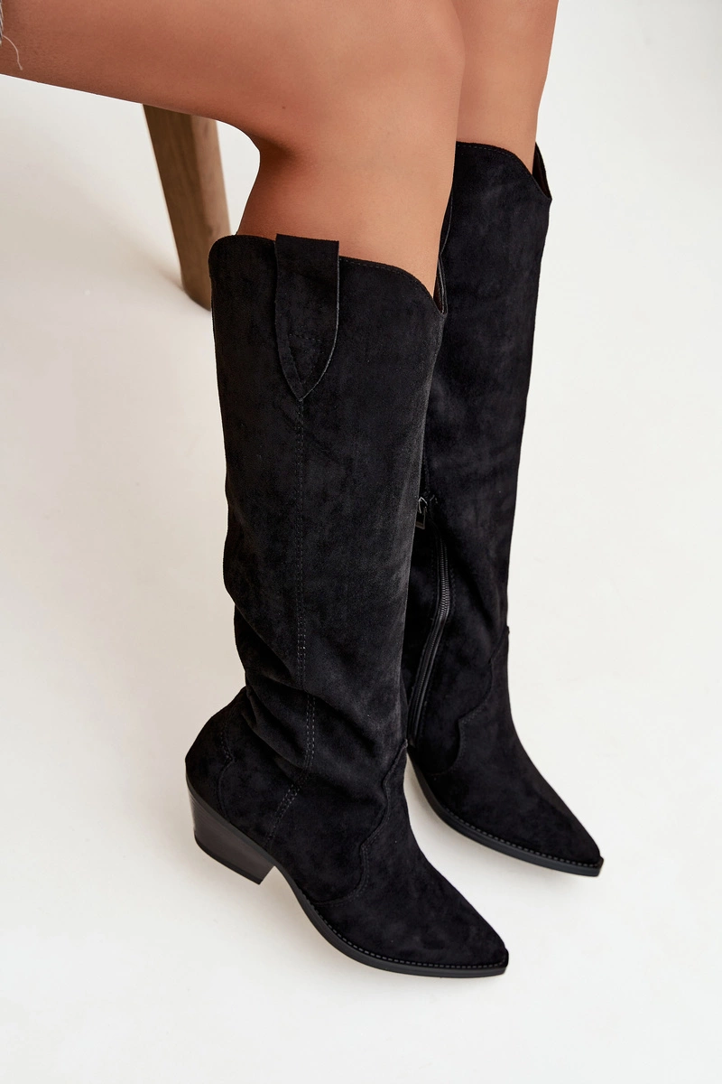 Ocieplane Kozaki Kowbojki Na Obcasie Z Eko Zamszu Czarne Jovianne