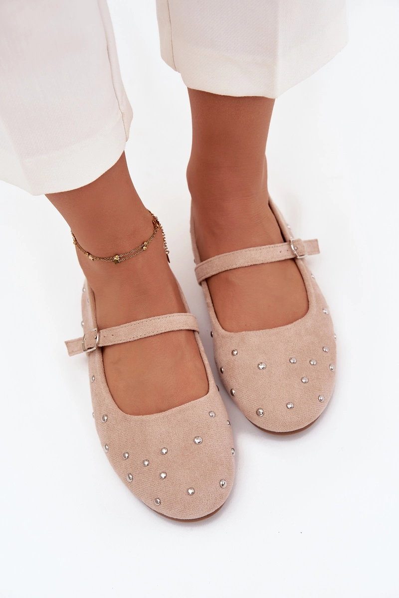 Zdobione Baleriny Damskie Z Paskiem Różowe Olivisse