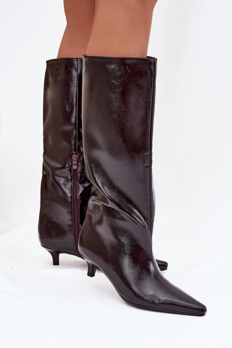 Lakierowane Kozaki Damskie Na Niskim Obcasie Bordowe Mireva