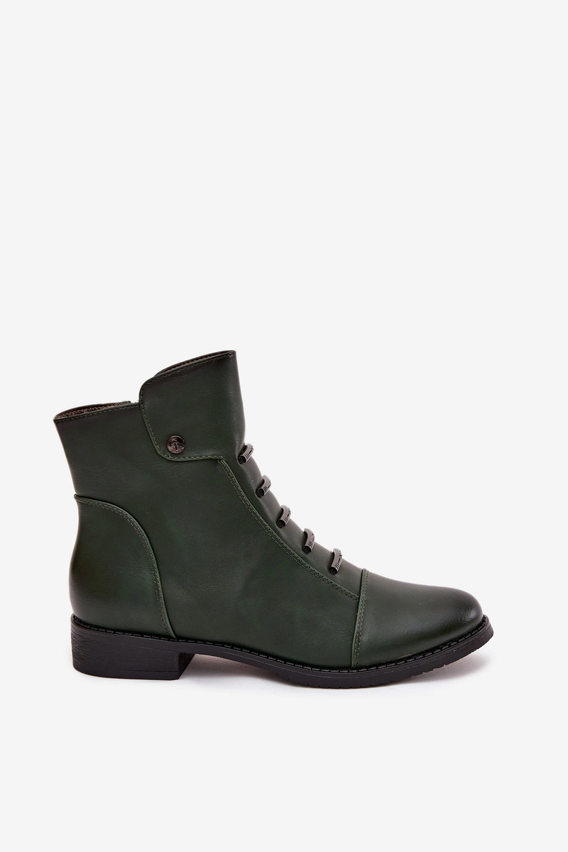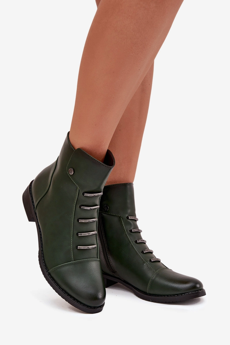 Botki marki Jezzi wykonane z eko skóry, które łączą styl z wygodą. Osadzone na płaskim obcasie, z zaokrąglonymi noskami, zapewniają komfort noszenia na co dzień. Model zapinany na zamek, co ułatwia zakładanie i zdejmowanie. Wnętrze ocieplane kocem obuwniczym, idealne na chłodniejsze dni. Te botki to świetny wybór na jesienne i zimowe stylizacje.
