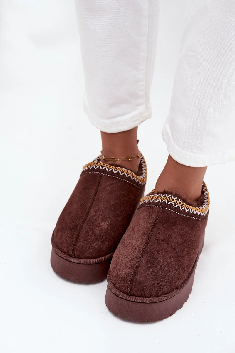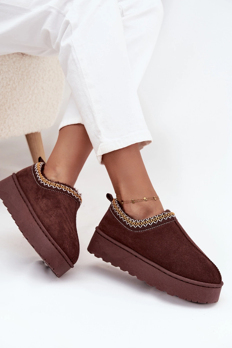 Śniegowce Niskie Damskie Z Haftem Na Platformie Czekoladowe Taliah