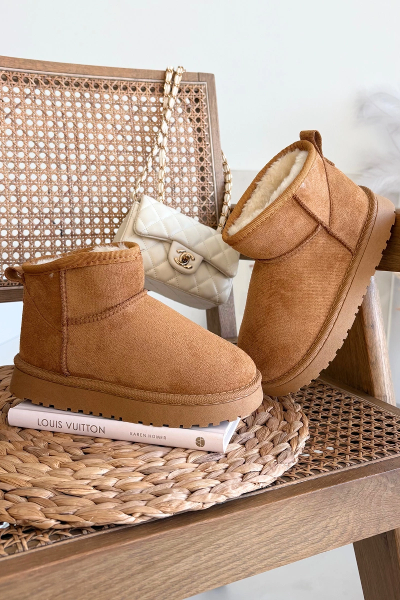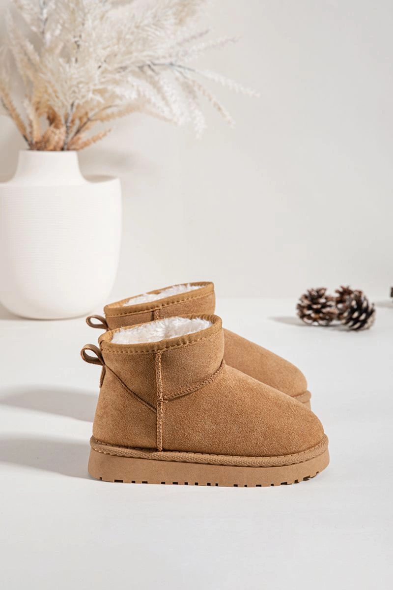 Śniegowce Dziecięce Młodzieżowe Ocieplane Futerkiem Camel Mireya