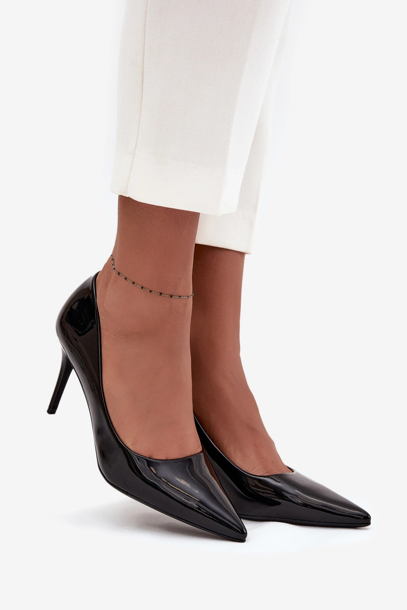 Lakierowane Eko Skórzane Szpilki Damskie Ze Szpiczastymi Noskami Czarne Jadira