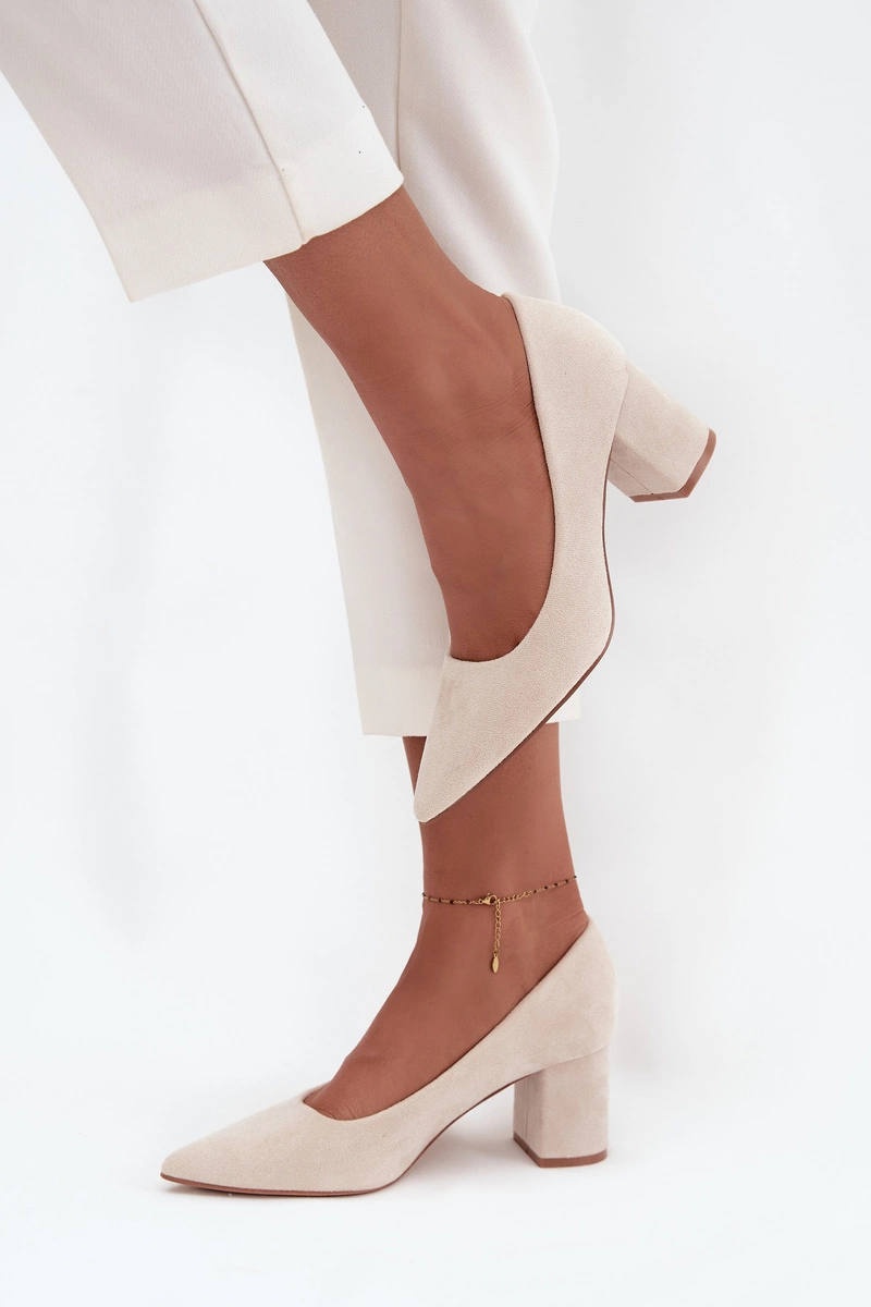 Czółenka Damskie Ze Szpiczastymi Noskami Na Słupku Beżowe Pavira