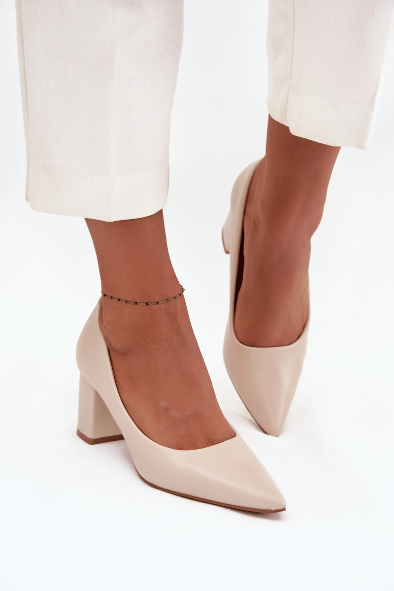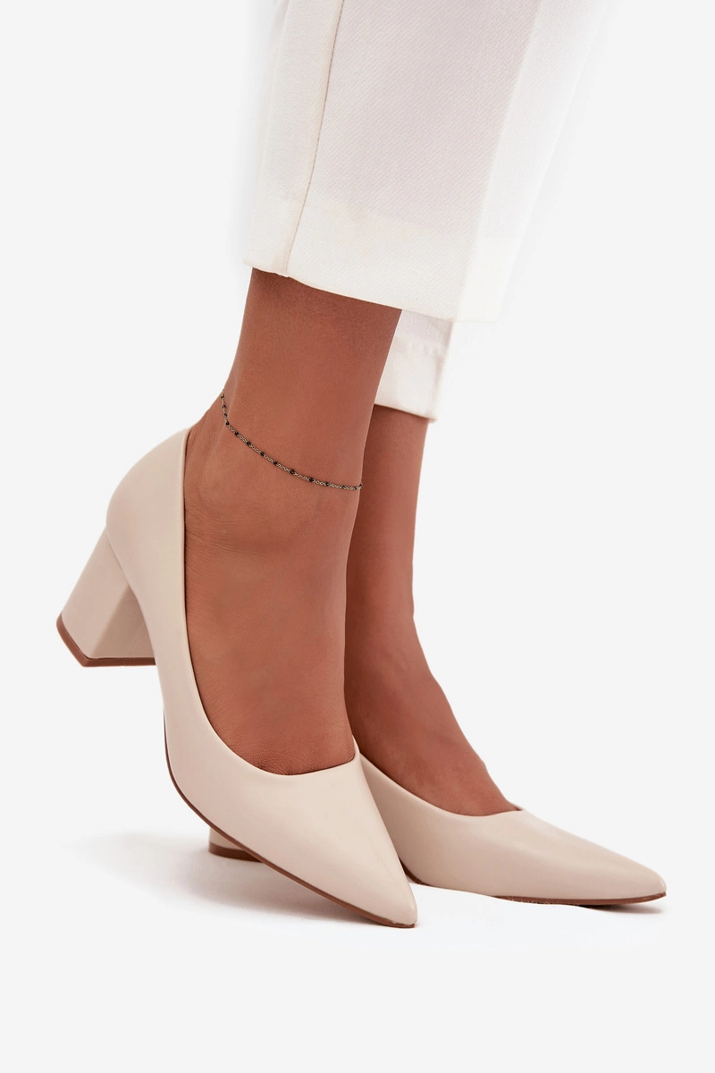 Czółenka Na Słupkowym Obcasie Ze Szpiczastymi Noskami Jasnobeżowe Ryvessa