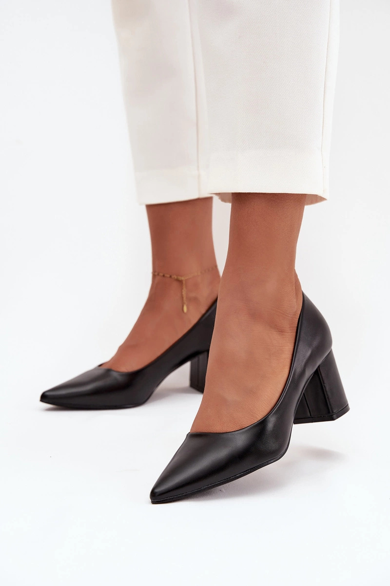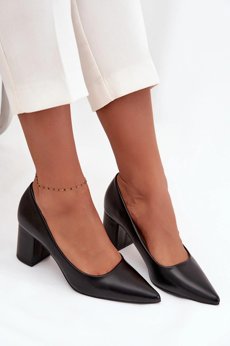 Czółenka Na Słupkowym Obcasie Ze Szpiczastymi Noskami Czarne Ryvessa