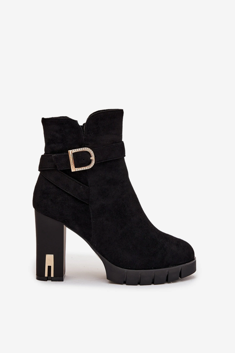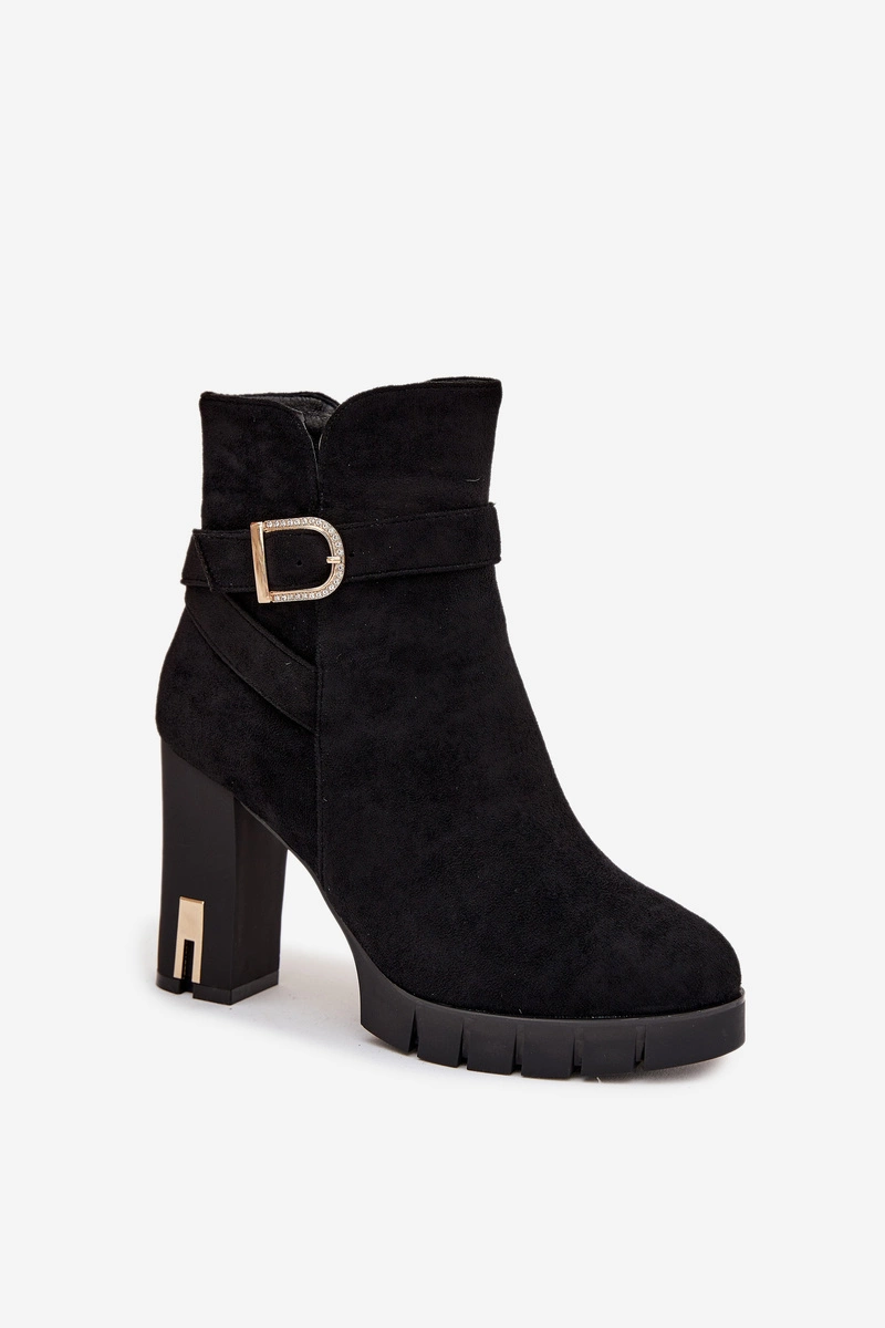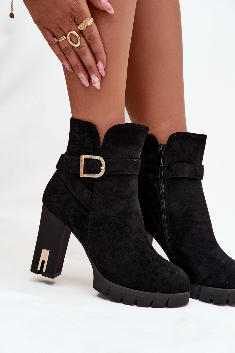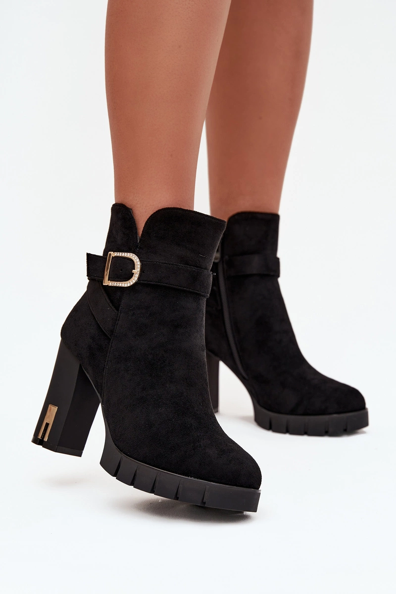 Ocieplane Botki Damskie Na Słupku Z Klamrą Czarne Nolivira